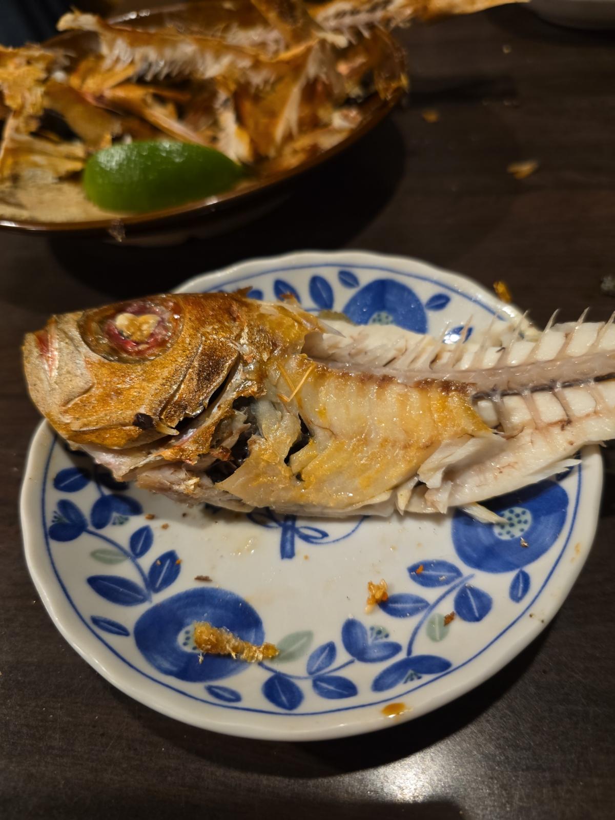 紅目蓮是少數不可以吃魚皮的魚種,魚皮魚鱗相當粗糙,店家也會細心提醒皮不能吃,但以此為代價,魚肉極為細緻綿密,滋味濃郁。