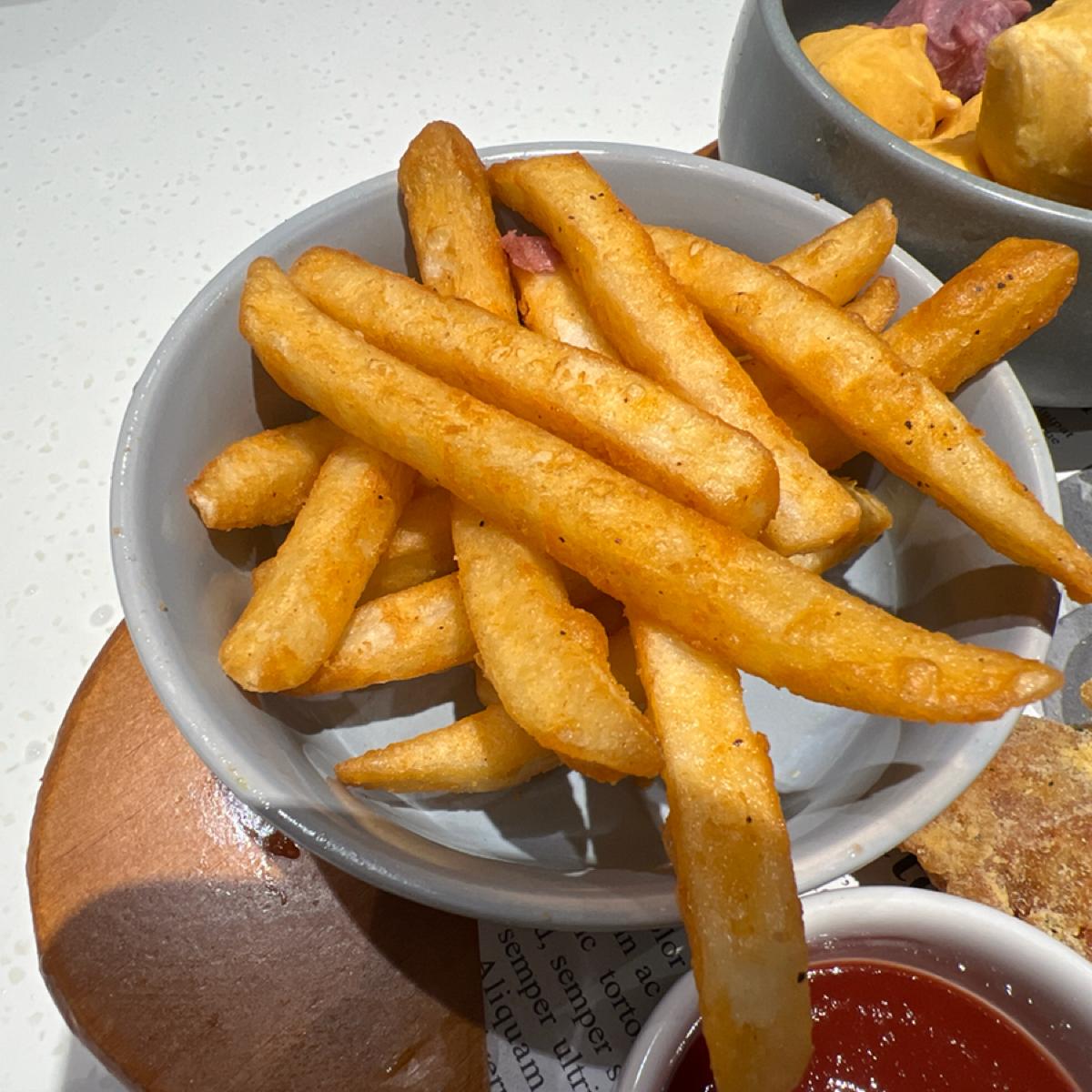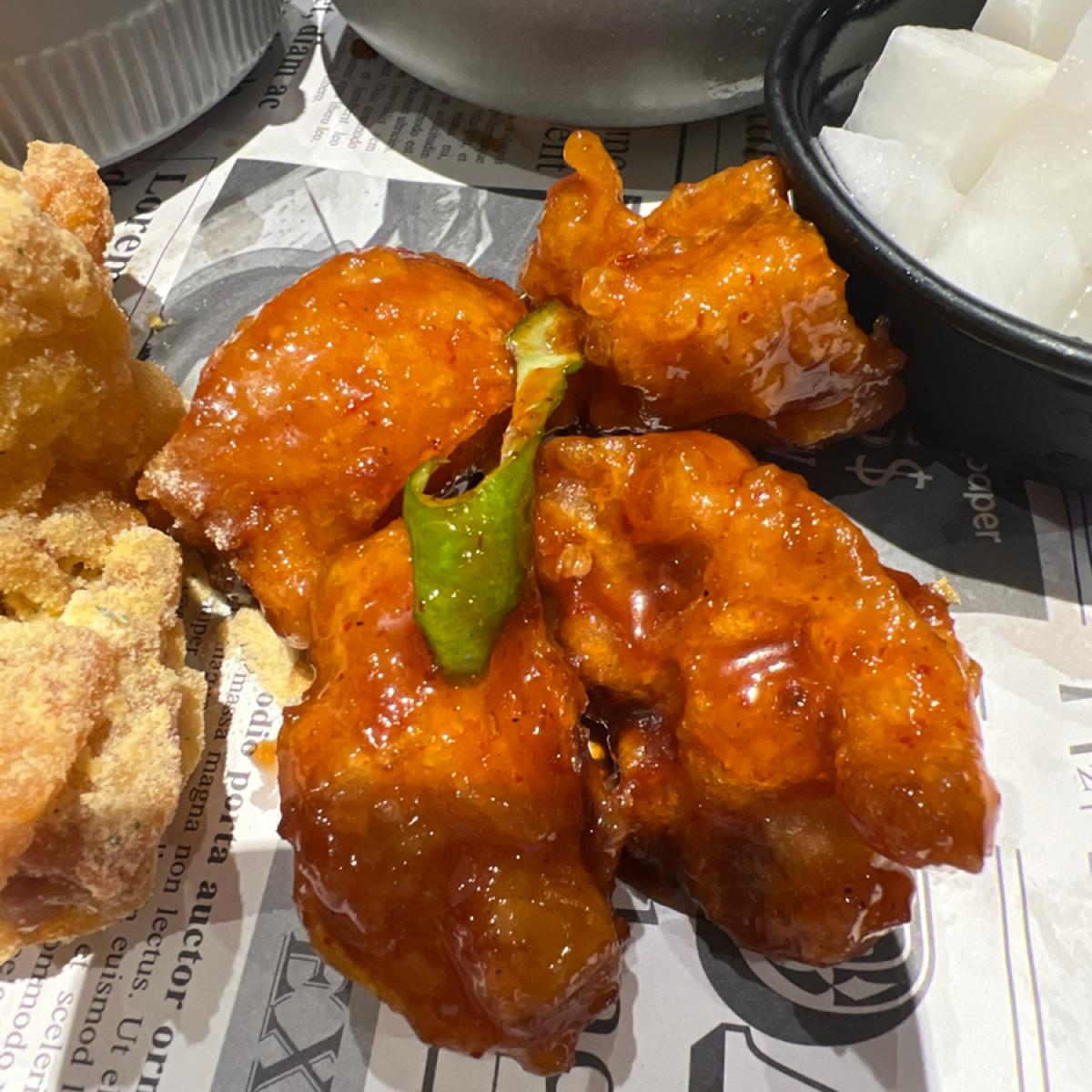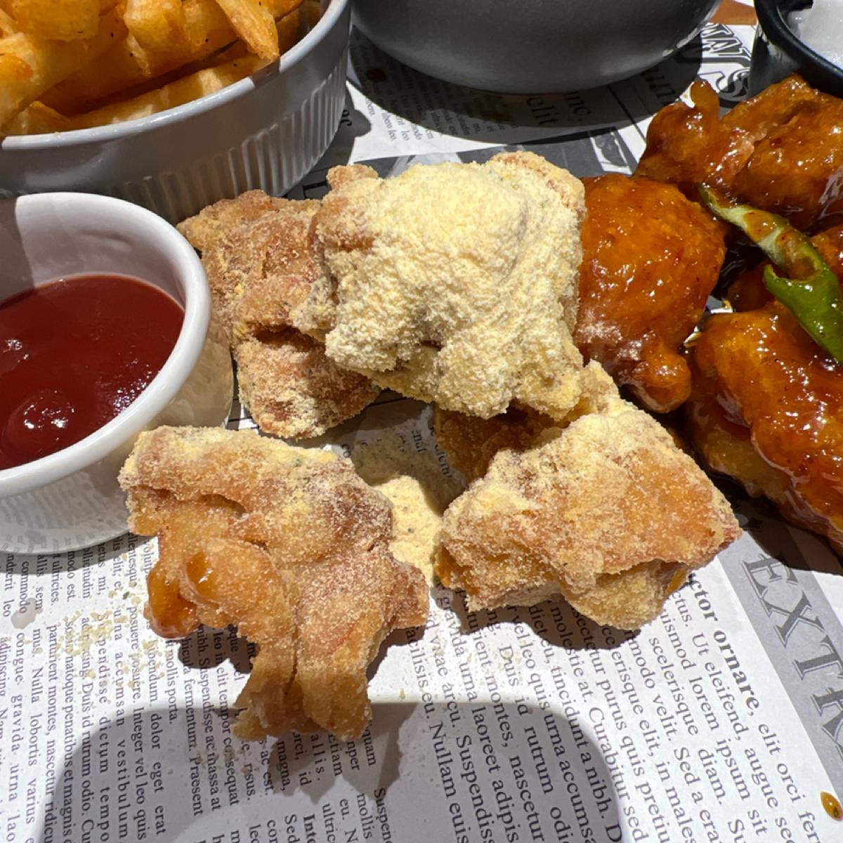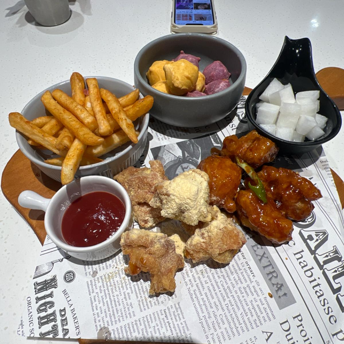 我點了他們的招牌——起司炸雞和甜釀炸雞,這兩款炸雞的口感確實不錯,外皮酥脆,內部多汁,尤其是搭配濃郁的韓式醬料,非常滿足。然而,份量上明顯偏少,像是薯條和地瓜球雖然好吃,但每份的量都不多,價格卻要328元加上服務費,性價比並不高。