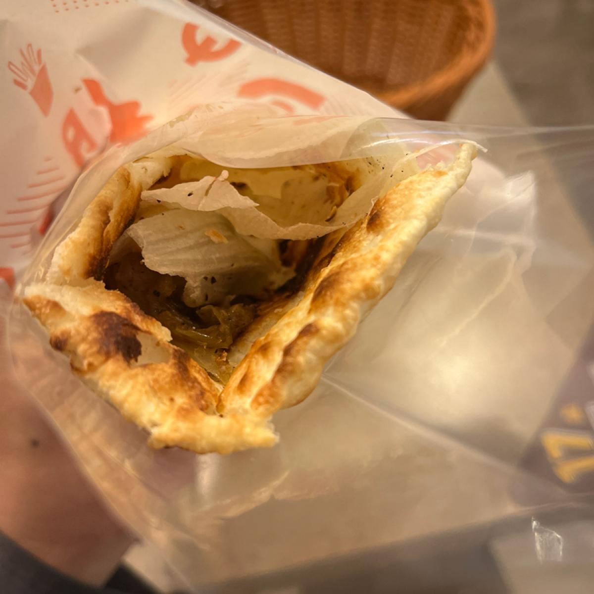 餐點 費城起司牛肉堡,餅皮酥脆但偏乾,牛肉味道蓋掉起司味 經典香蔥脆薯,量有點少,蹭熱吃 大杯水果茶,半糖有甜味,水果味道明顯