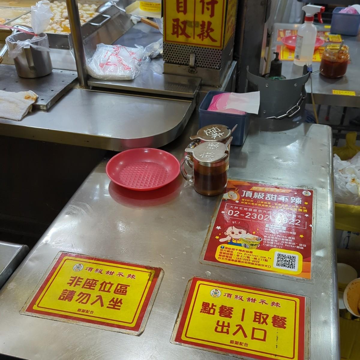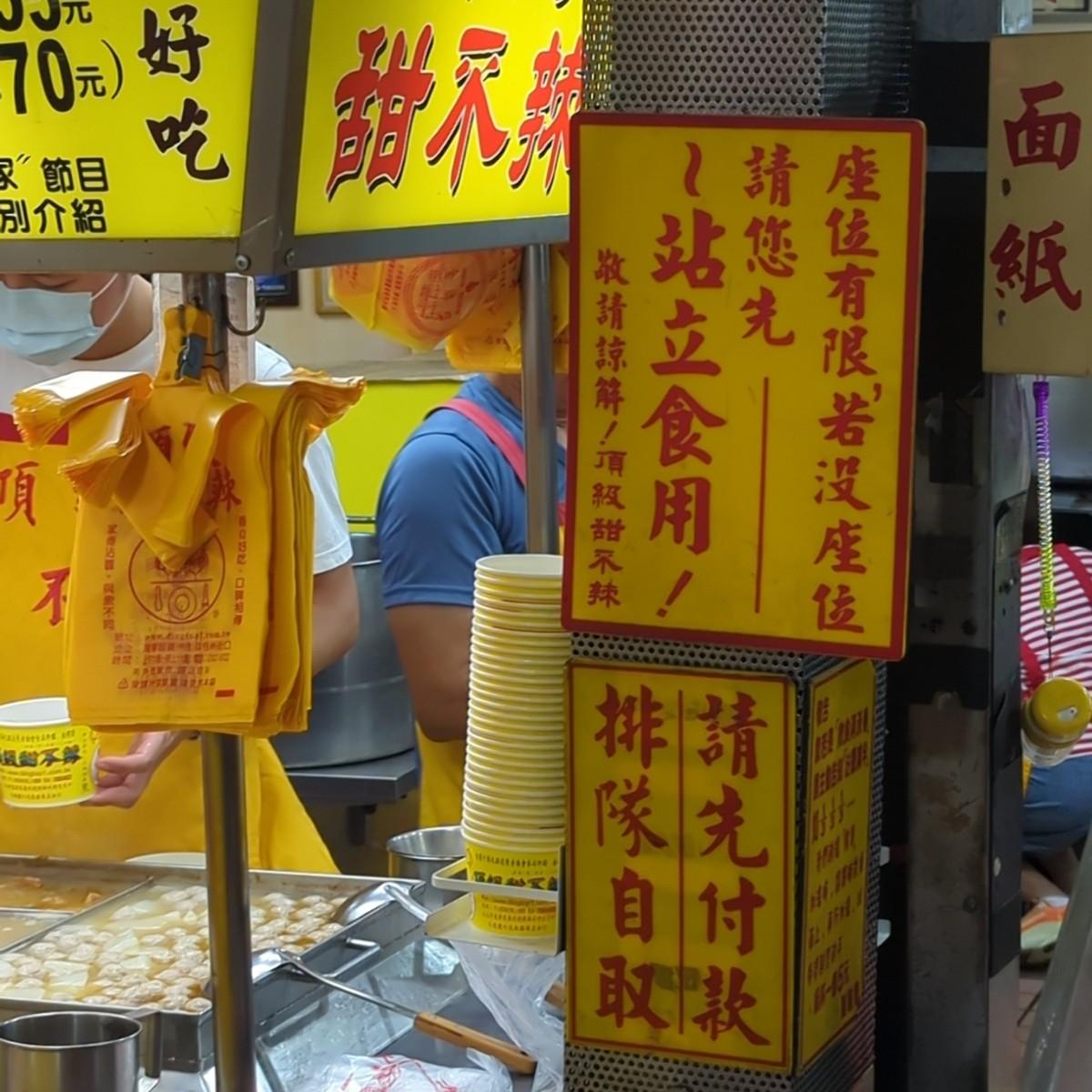 💬雖然是叫甜不辣,但應該是關東煮的簡稱,裡面內容不只有甜不辣、菜頭、米血糕、小貢丸、油豆腐跟水晶餃。以前是坐在店家裡面,但疫情後只能坐在店外位置跟馬路上的零星椅子上,還有可能被路人不小心撞到(假日人真的很多),甚至沒位置需要站立食用的,用餐環境比較尷尬一些,但吃完甜不辣再加個熱湯(免費無限續湯)在冬天真的是一大享受(夏天就...不好說啦)