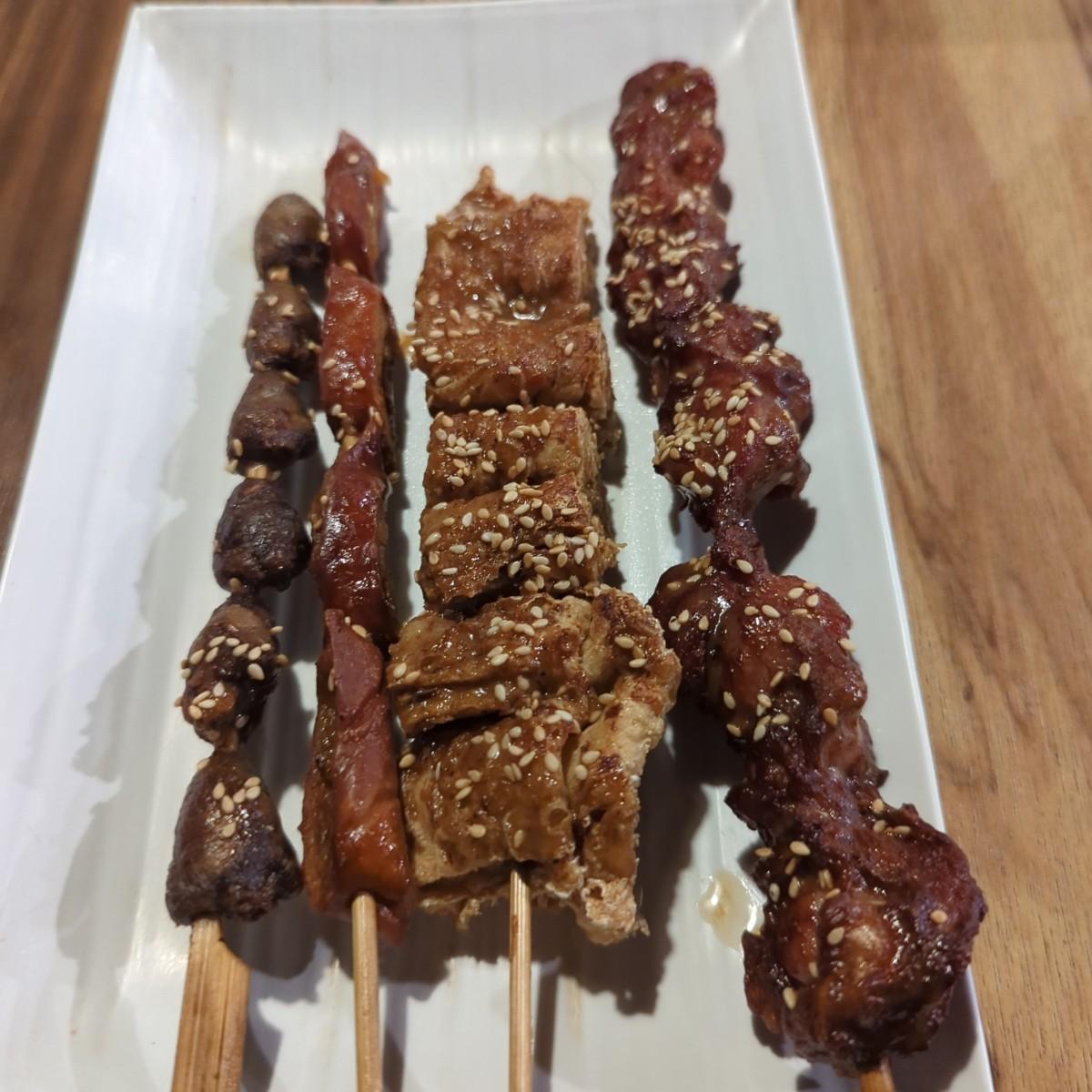 點了一杯Orion $150 烤豆包$40 烤雞腿肉$60 烤雞心$50 烤肥腸$50