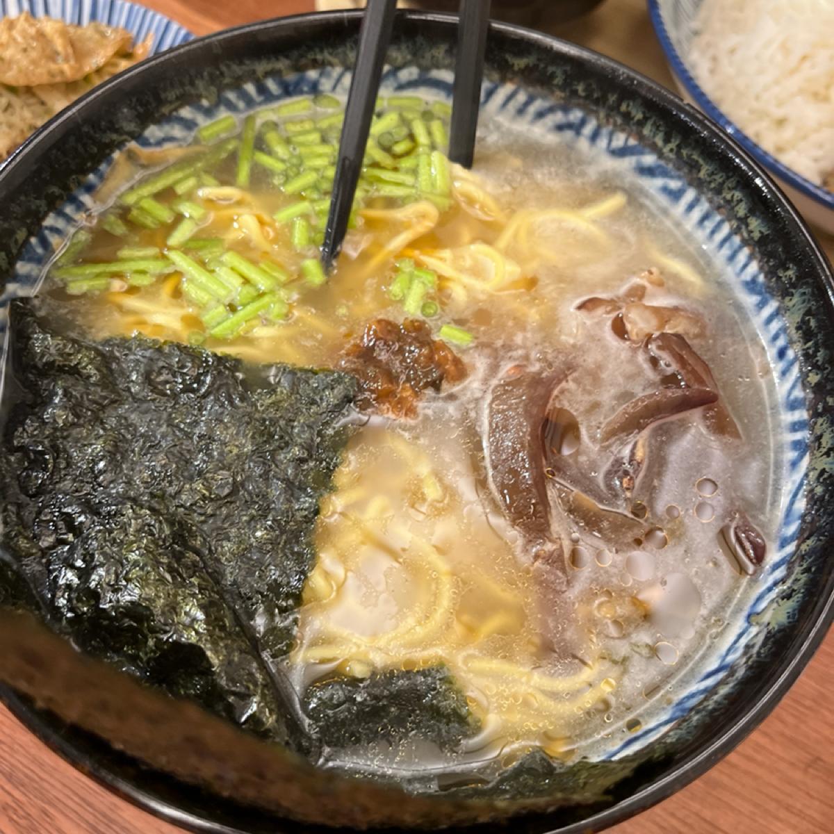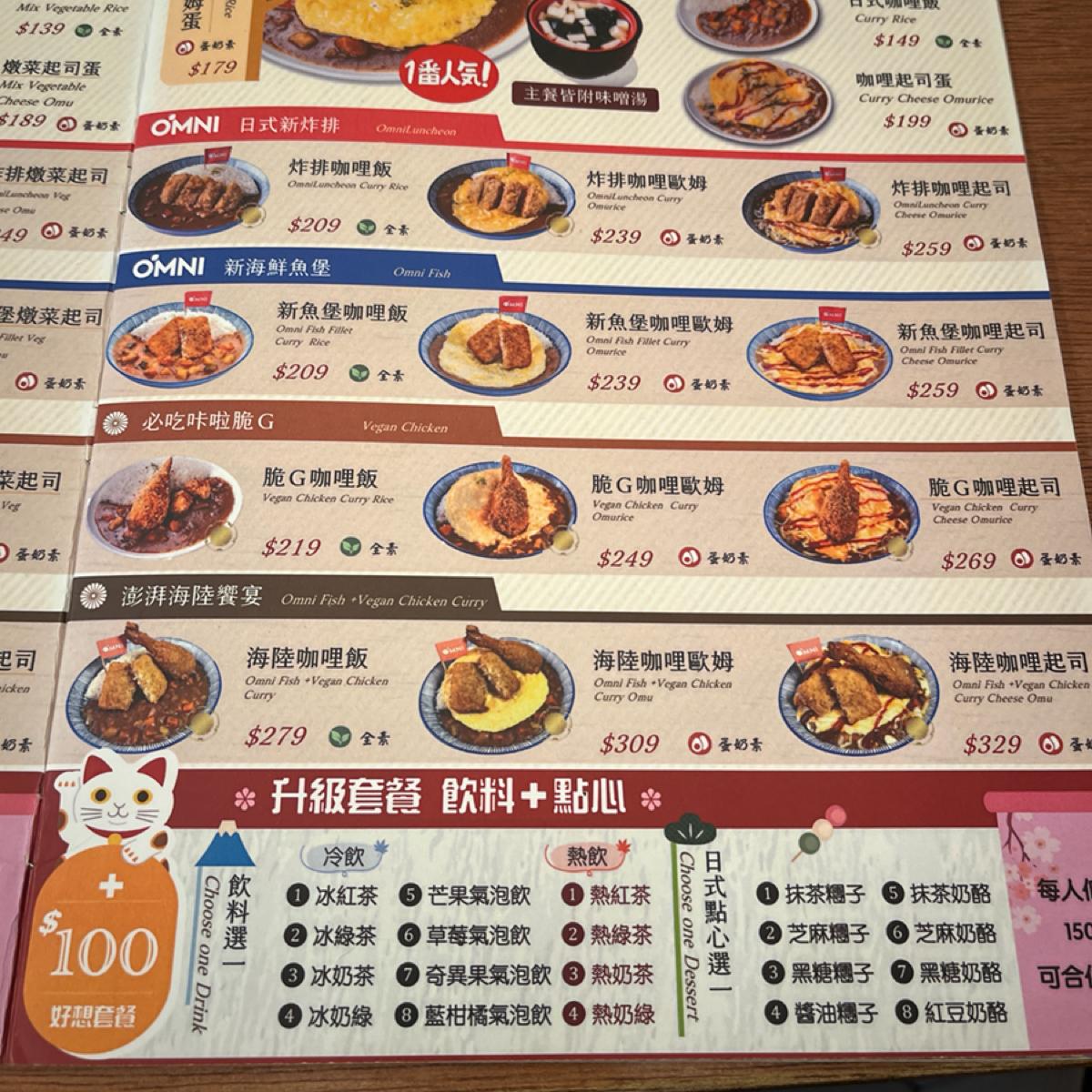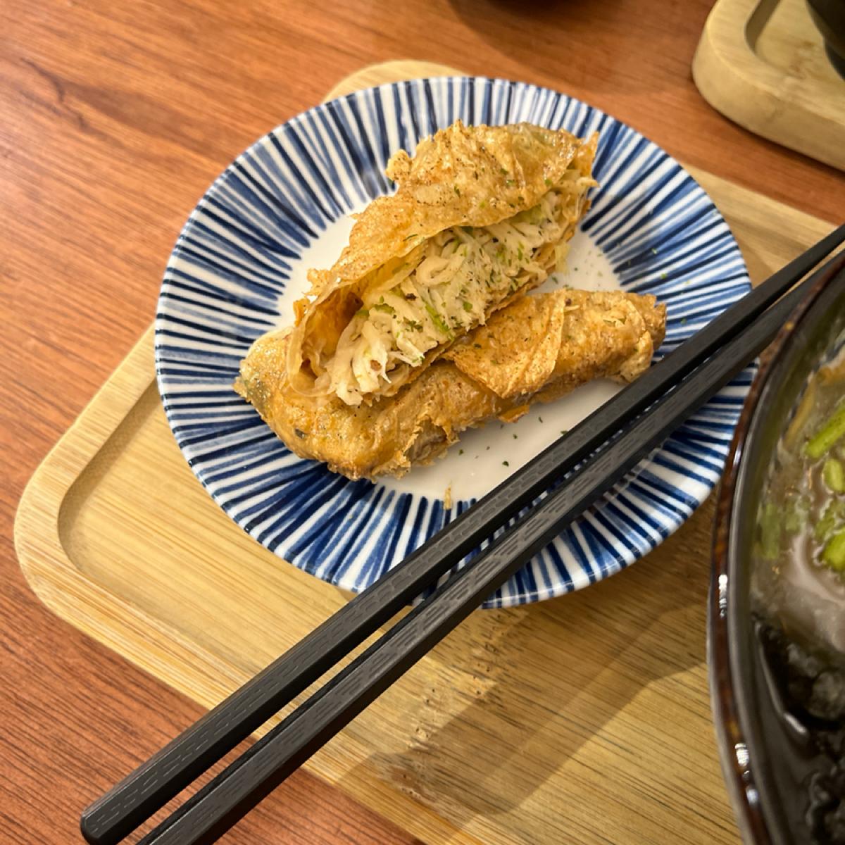 餐點 炸魚燉飯,炸魚味道還蠻像的,外皮酥脆,但燉飯沒有很濕潤,吃起來偏乾,可以配味增湯 鮮菇麻油拉麵,味道蠻重的,我沒吃出麻油味,但還不錯吃,再配上脆筍卷,脆筍卷比較沒味道,配起來還行