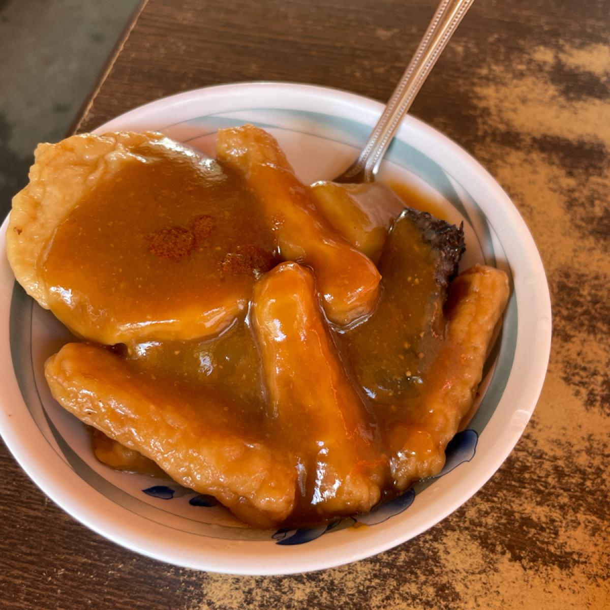 一直都知道社子島第一辣的辣椒醬,吃過真的很辣。剛好去附近就決定來吃看看,小吃店在轉角,人潮還挺多的,整體算蠻通風的,不會太熱。 點了大腸麵線、甜不辣跟肉圓。大腸挺有咬勁,也有滷入味、麵線普通。甜不辣裡頭蘿蔔好吃,米血、丸類都爛爛的,口感挺差的。肉圓真的很無聊,旁邊的筍絲完全沒加到分,肉餡乾柴、調味寡淡。裡面有鵪鶉蛋挺酷的。 所有的小吃加了他們辣醬都會加分。但本質還是挺普的。