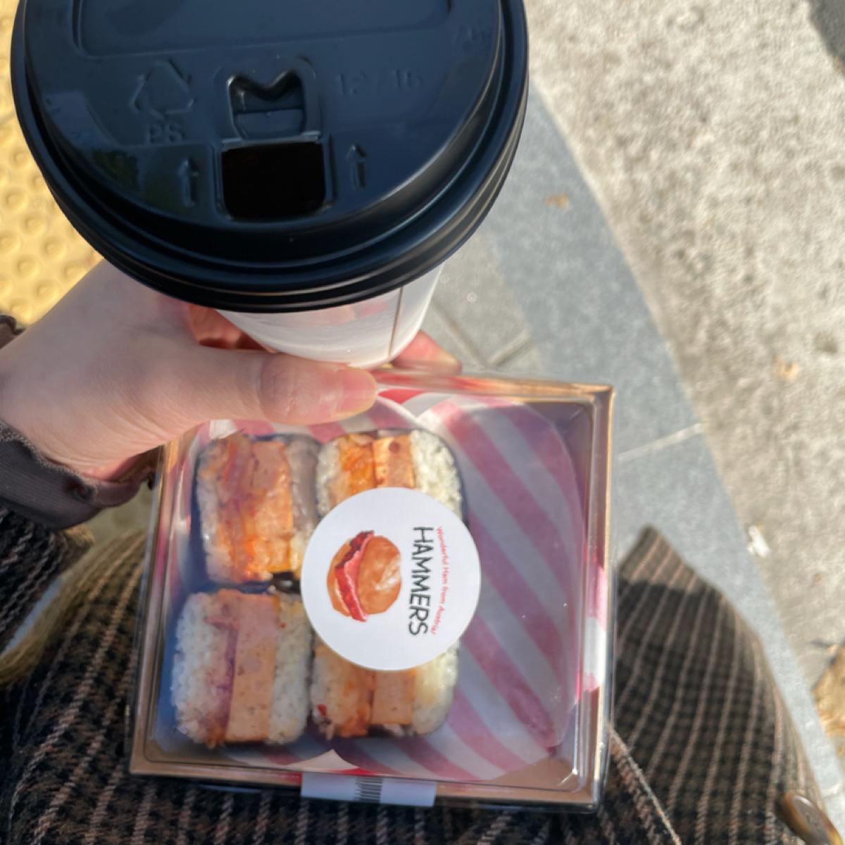 午餐肉不會過鹹,調味剛好,肉香味十足且入口即化!飯是帶點黏度的,泡菜偏酸一點、剪的小小塊的不需要太多咀嚼,但增加了一點口感。海苔的麻油味比想像中淡,微微的麻油香而已。整體吃起來很舒服! 冰美式令人驚艷!可能是吃了偏鹹的東西,讓冰美式的甜味被激發出來??總之入口的瞬間感受到它的香氣跟甜度!非常不錯~