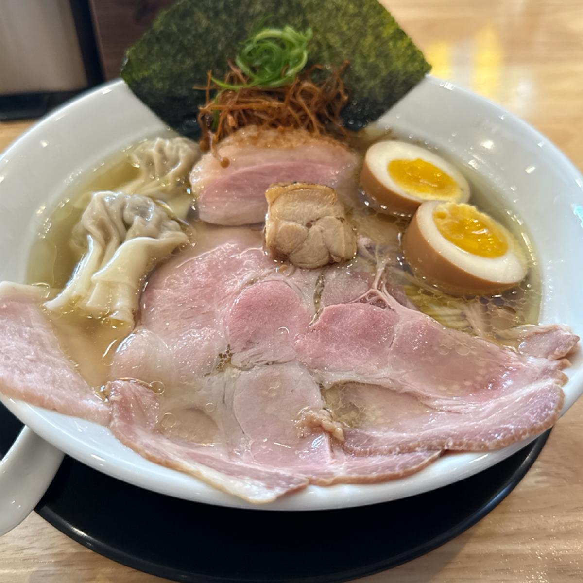 湯頭以雞骨與昆布為基底,再帶出貝類的甘甜,清澈卻不單薄,這碗更注重鮮味的層次感。麵條的硬度稍微偏硬,對我來說正好,咬勁令人滿意。