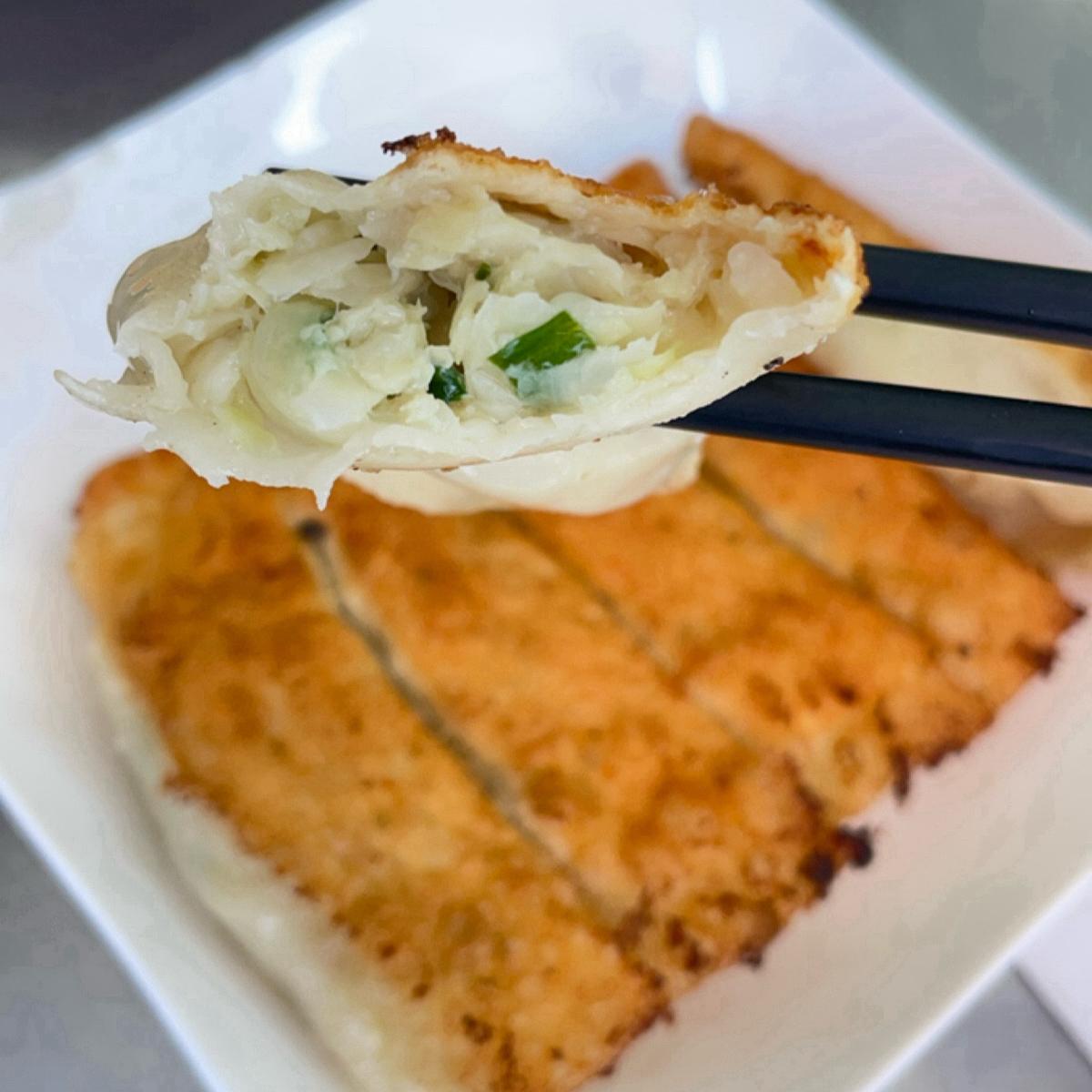 鍋貼煎得又脆又燙,一樣是偏半煎炸,不過外皮油收得還不錯,不會夾起來就滿滿的油,鍋貼個頭比八方雲集稍微小一點,比較像是大顆一點的煎餃,內餡的料不多不少,味道很不錯