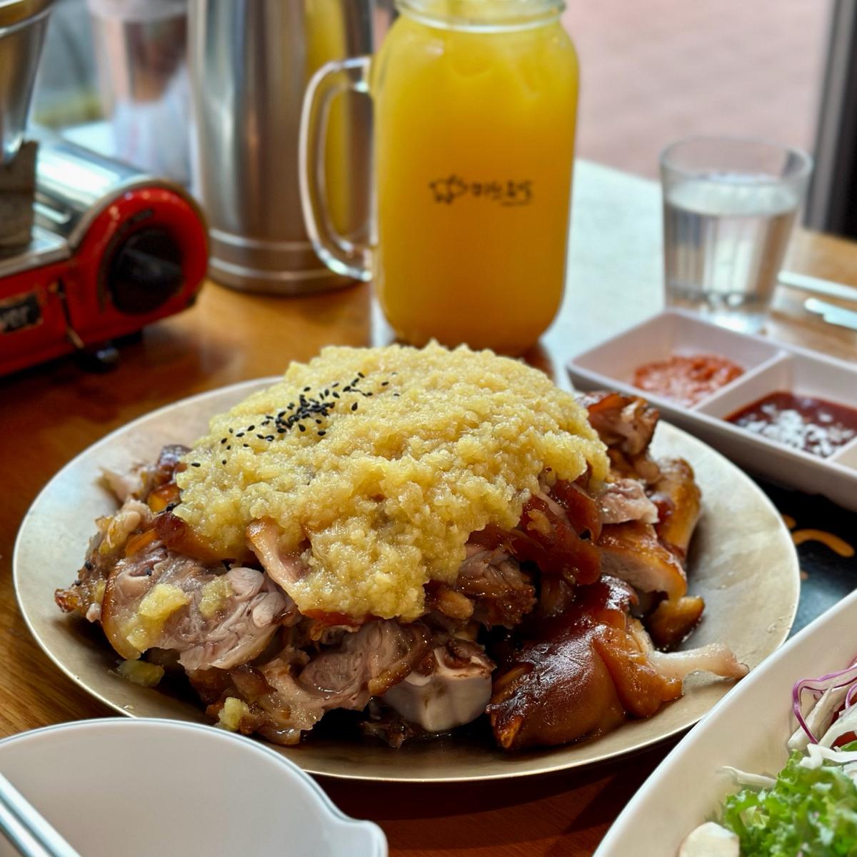 這家店的豬腳份量非常大,而且不論是味道還是口感,都讓人讚不絕口。豬腳外皮軟嫩且Q彈,內部的肉質和油花保持白皙,色澤相當誘人。上桌時,豬腳幾乎已經去骨,切成片狀,每一口都柔嫩多汁,卻不至於軟爛。除此之外,店家贈送的小菜、沙拉和泡菜鍋也都不馬虎,食材新鮮,味道出色。由於這家店非常受歡迎,前往時記得先在店門外的等待表上填寫資料,等待店員叫號喔!