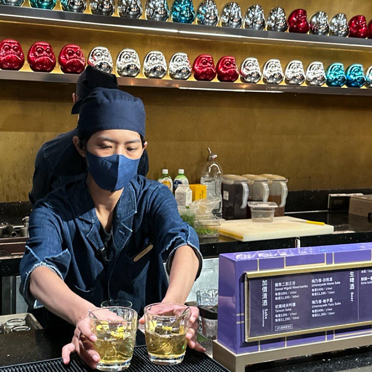 門口一進來就可以看到飲料區,有提供KIRIN一番搾生啤酒、4款沙瓦特調、冷熱飲及多種現榨果汁,另外還有一些特別的純酒款如獺祭等清酒需要另外加錢,若不想額外花錢的話建議可以直接點牌子上的 4 款調酒即可!我個人最喜歡的是梅酒為基底的山吹蜜YAMABUKI,梅酒的香氣喝起來甜甜的,很適合搭配旭集的海鮮一起享用!