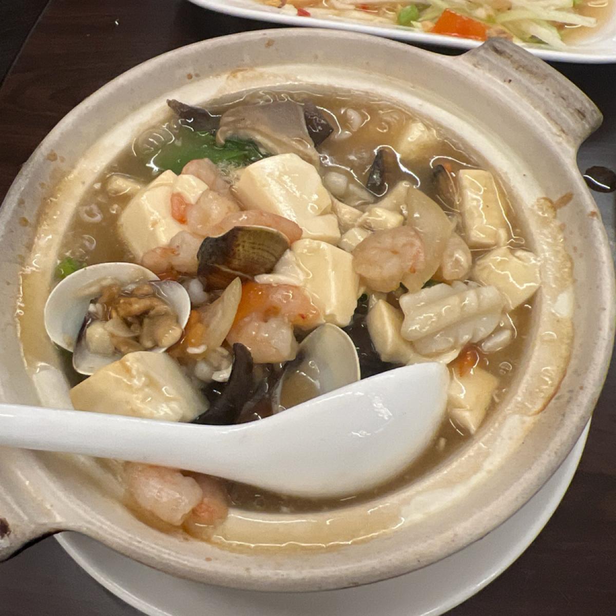 這次點了破酥包(肉)40元,就是一顆肉包;椒麻炸豆腐120元,剛炸好時香氣夠;椰香脆皮雞190元,椰汁風味濃郁;腐乳空心菜120元;蝦醬高麗菜120元;豆瓣茄子130元,吃起來稍嫌油膩;海鮮豆腐煲190元,味道下飯;雲南椒麻雞190元,肉質偏薄;涼拌青木瓜130元,辣度適中;白飯一碗10元。
