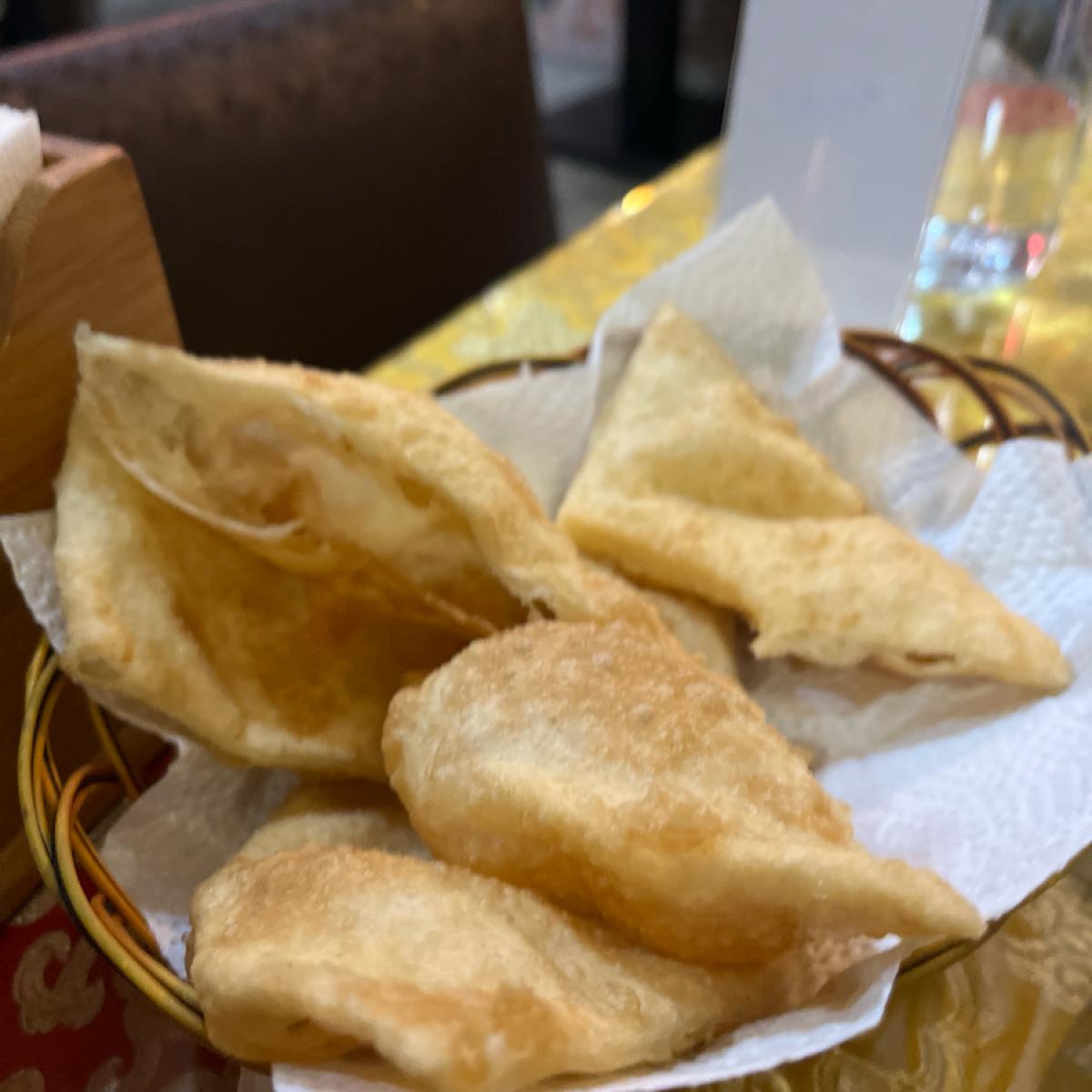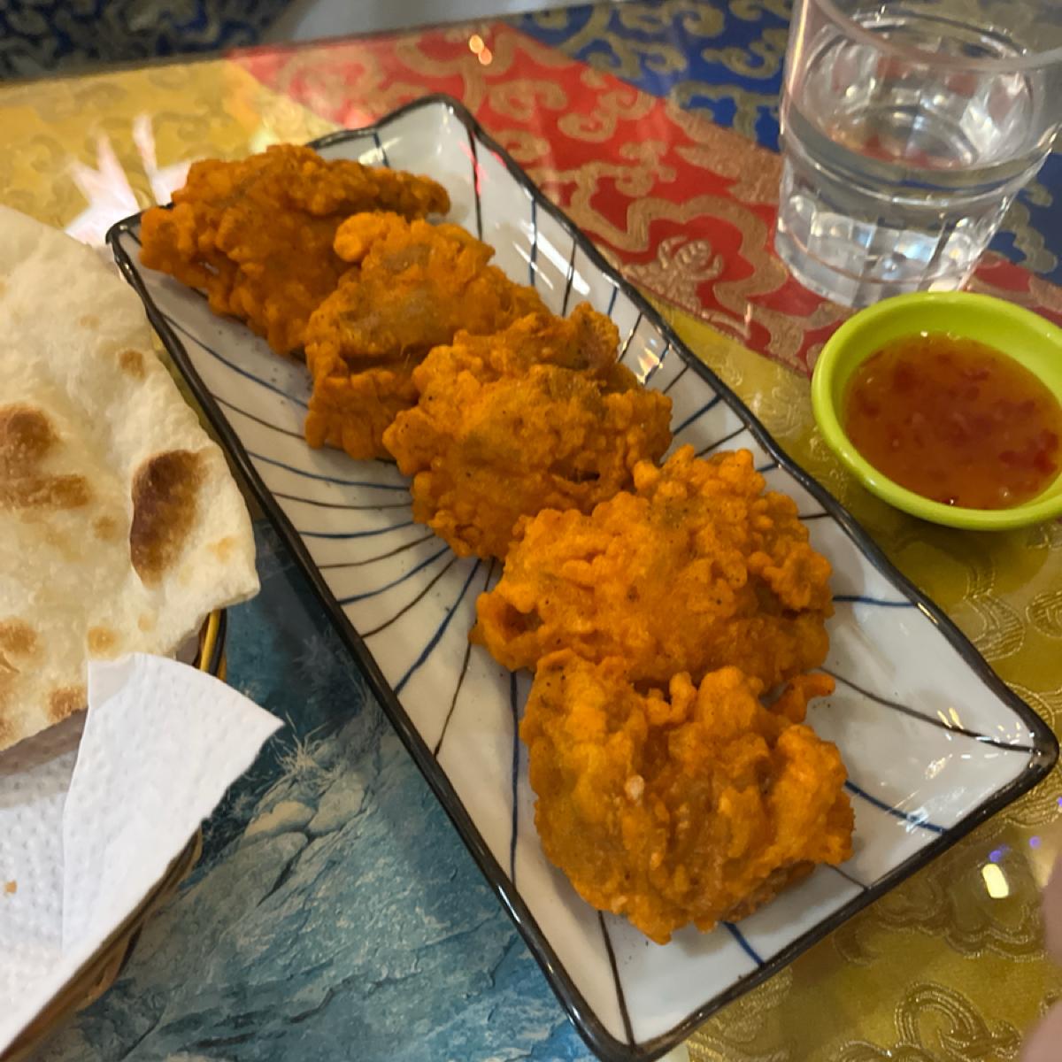 白乾酪饃饃則是較溫和的一道,吃起來滿像蒸餃的。藏式炸餅口感酥脆,單吃就有麵香,搭配主菜或醬料都很合適。至於印度鹹酥雞用的是雞腿肉,外層裹的麵衣比較厚,味道一般。