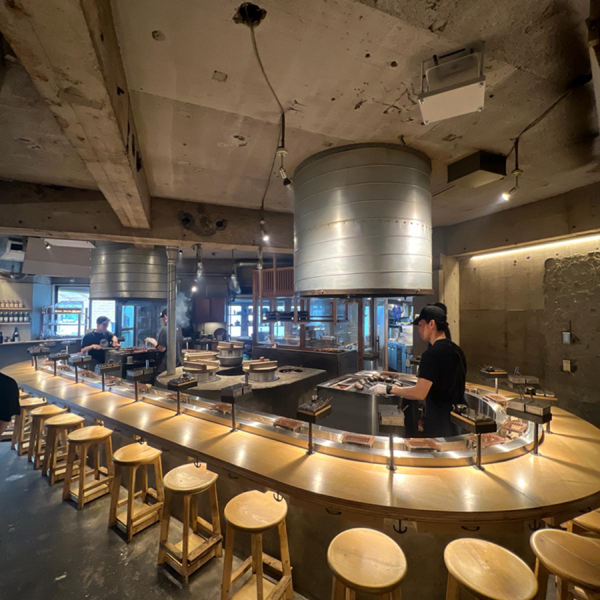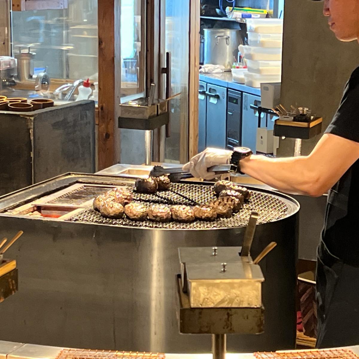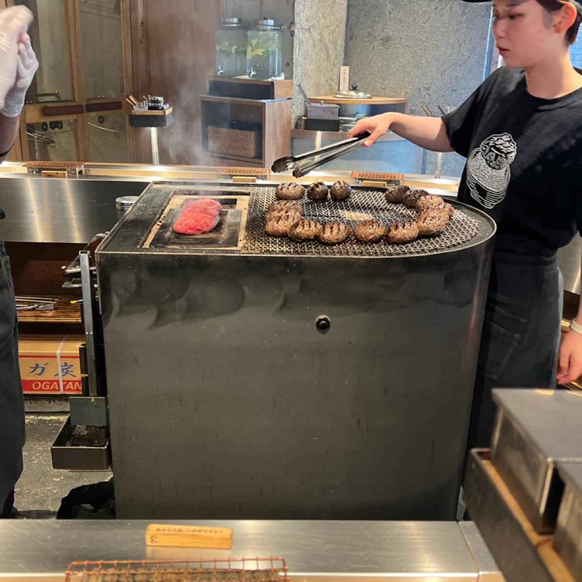 本次是我第二次造訪這家店,現打的漢堡排在炭火上吱吱作響。整間店都煙霧瀰漫,但是店家很用心的又在店內放了一個隔絕的空間,可以把背包或外套放進去裡面。