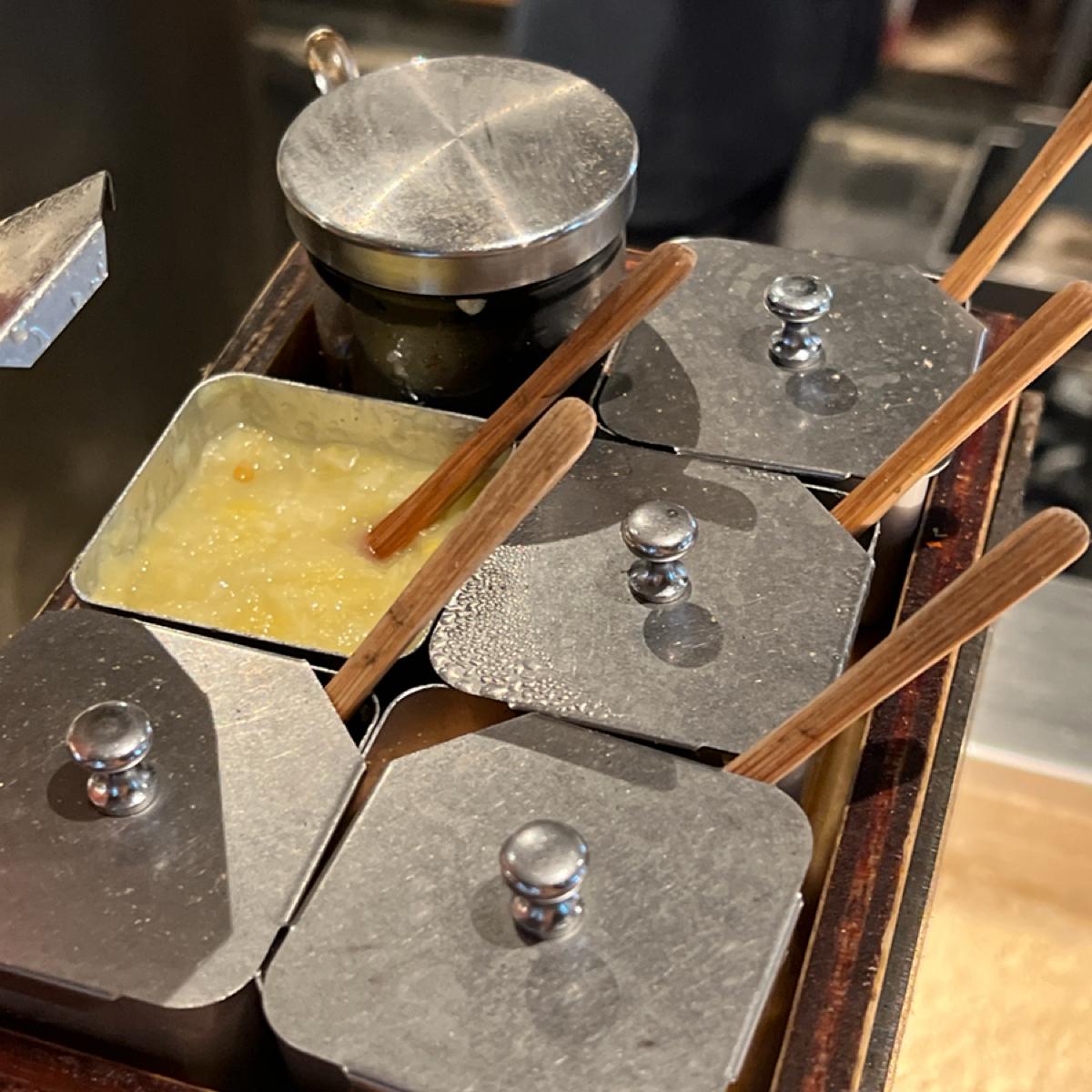 這家店的另外一個特色就是醬料非常的豐富我的照片裡面有拍好幾個小鐵盒,最左下角的蔥醬非常好吃,不過會有一點辣。此外這間店的飯也煮的很好,不但粒粒分明以外,還有一種黏口的感覺。搭配上漢堡排吃可以說是相得益彰。最後每個人都可以有一顆蛋,直接打在飯或者是漢堡排上面吃,那個味道也是讓人難忘。