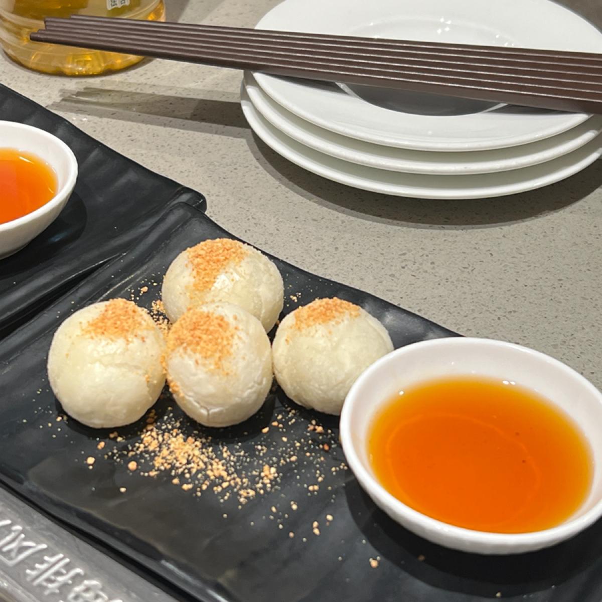 非常推薦可以點選的甜品,有水果料、粉圓還有寒天,冰冰涼涼的有點甜又不是太甜,忍不住一口接一口一碗就吃完了~