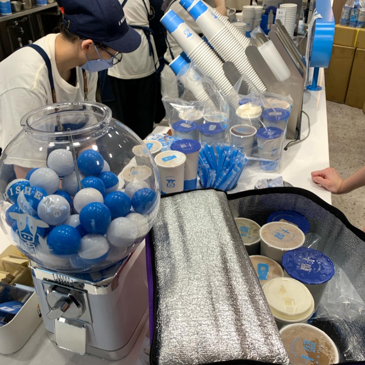我是等下午時段人潮散去後,才來購買;滿 100 元可取轉蛋,為各種下次抵用的折價券等;僅收現金。