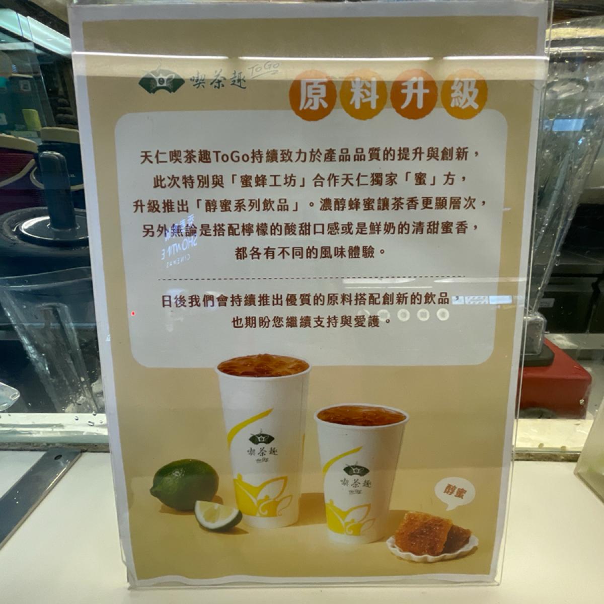 整體而言,天仁茗茶的手搖飲算是安全牌,不會踩雷,之後再訪想喝看看炟客奶茶和跟蜜蜂工坊合作的醇蜜系列飲品~