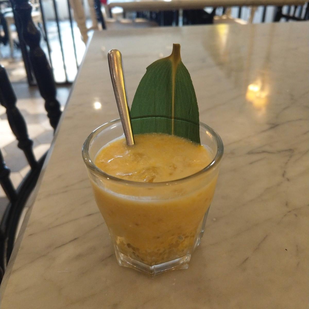 芒果西米露(Google map五星贈):是贈送的所以很小杯,現作還有點溫溫的,裡面的料都糊糊的不會很甜。