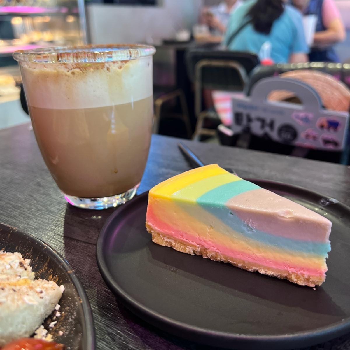 店員在我們點餐完後,說點蛋糕可以折抵30元,並介紹說這款彩虹優格乳酪是小朋友能吃的蛋糕(我們帶了一位兩歲的幼兒),我們就腦波弱點了一份。