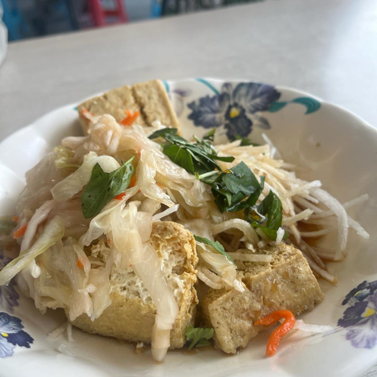 很多觀光客來吃的臭豆腐,非常臭,從遠處騎車經過就會聞到臭味,假日聽說會大排長龍,我去的時候是平日中午,還不算多人不用排隊。 抽號碼牌點餐,他會叫號再點餐結帳。內用區自己找位子坐,沒有冷氣是半通風,但有風時還算涼快。 這次嘗試酥炸臭豆腐,外皮是酥的,裡面稍軟,但因為我喜歡都軟的,所以覺得還可以,可是對泡菜有點失望😞沒有很入味,少了點什麼,我妹之前吃過,也說這次泡菜沒入味。 比較特別的是還有九層塔和蘿蔔絲,但吃過即可,不會想一直來吃。還有涼拌臭豆腐,很特別,這次沒試,之後有機會再吃吃看。