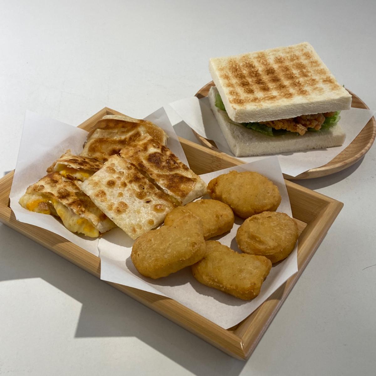 位於蘆洲巷弄的一間早餐店,主打炭烤吐司,剛好在平日上午過來,不然六日會超多人,要等很久,價位的部分算偏小貴一點點,但餐點的部分我覺得還不錯,這次點了貳仁雞腿吐司,看起來有點像卡啦雞,但吃起來口感有點不像,皮吃起來很脆。吐司的部分,有用炭烤烤過,口感很不錯,吐司的部分,不是採用美乃滋跟小黃瓜,而是採用藍莓醬跟蘋果片搭配,吃起來很特別,因為有酸甜鹹的層次在裡面。吐司的部分,外皮酥內皮軟。起司的量剛剛好。整體來說,蠻推薦大家來這間吃~