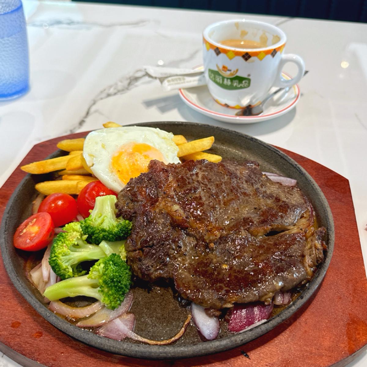 這個下午茶套餐包含了牛排(薯條/半熟蛋)、菠蘿包,還有一杯香濃的奶茶,讓人有一種吃正餐的飽足感。牛排煎得剛剛好,外層微脆、內裡嫩滑,再配上濃郁的黑胡椒醬,簡直完美。吃完牛排,再咬一口他們家的菠蘿包,外皮酥脆,內心鬆軟帶點甜味,搭配奶茶,瞬間滿足了我對下午茶的所有幻想。