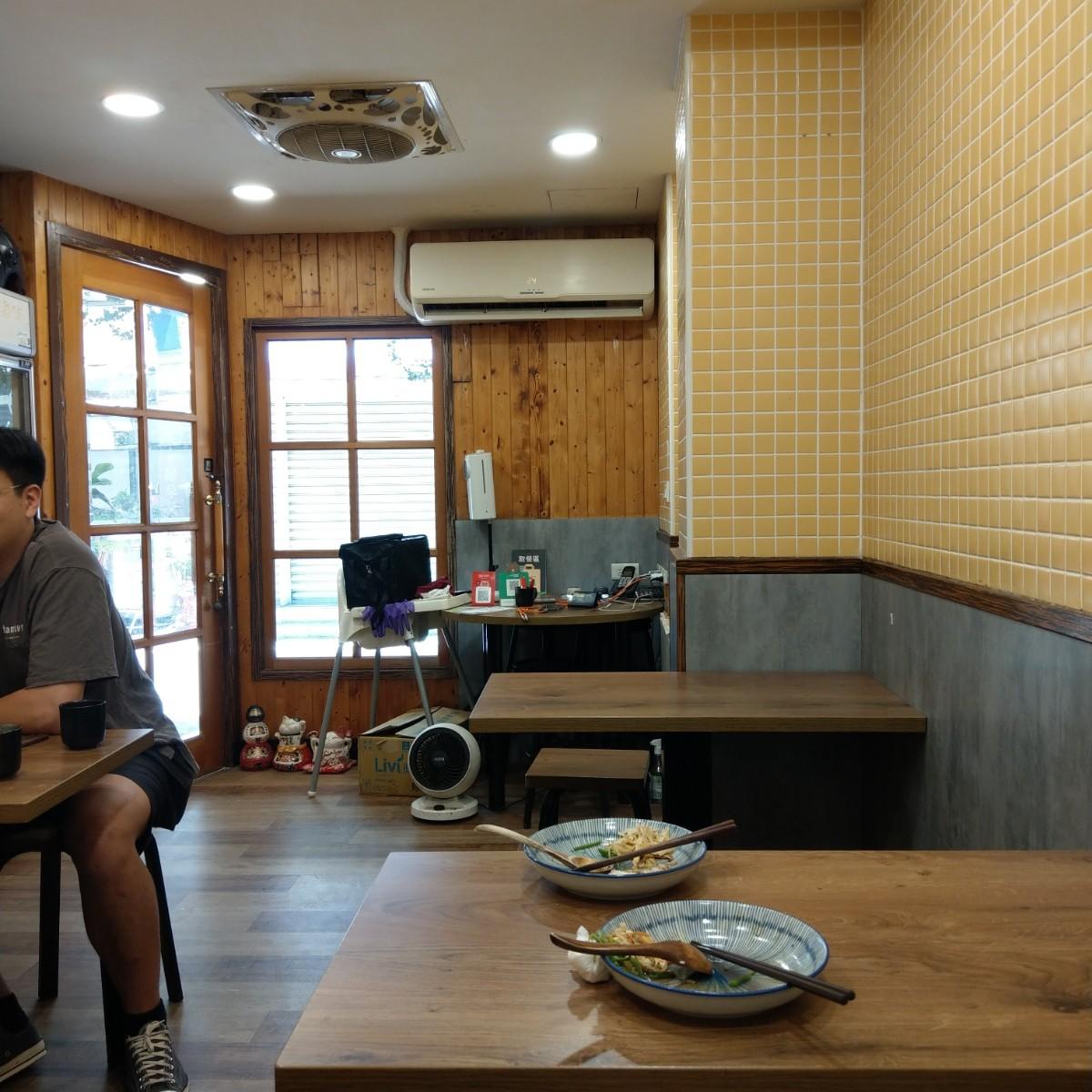 🏠空間:外立面採用溫潤的木頭頗有氛圍感,走上兩階樓梯推門入店內,內用區很小,僅有15個座位,牆壁採用黃色磁磚,木質桌椅,環境乾淨還有個極限小的廁所,廚房在最內側,點餐、製作到結帳,僅有老板一人。