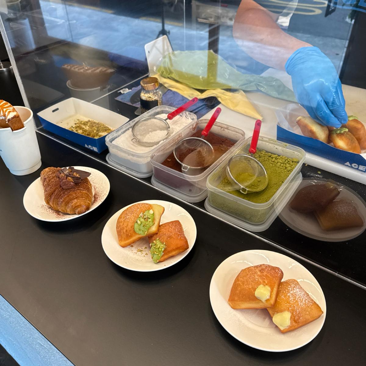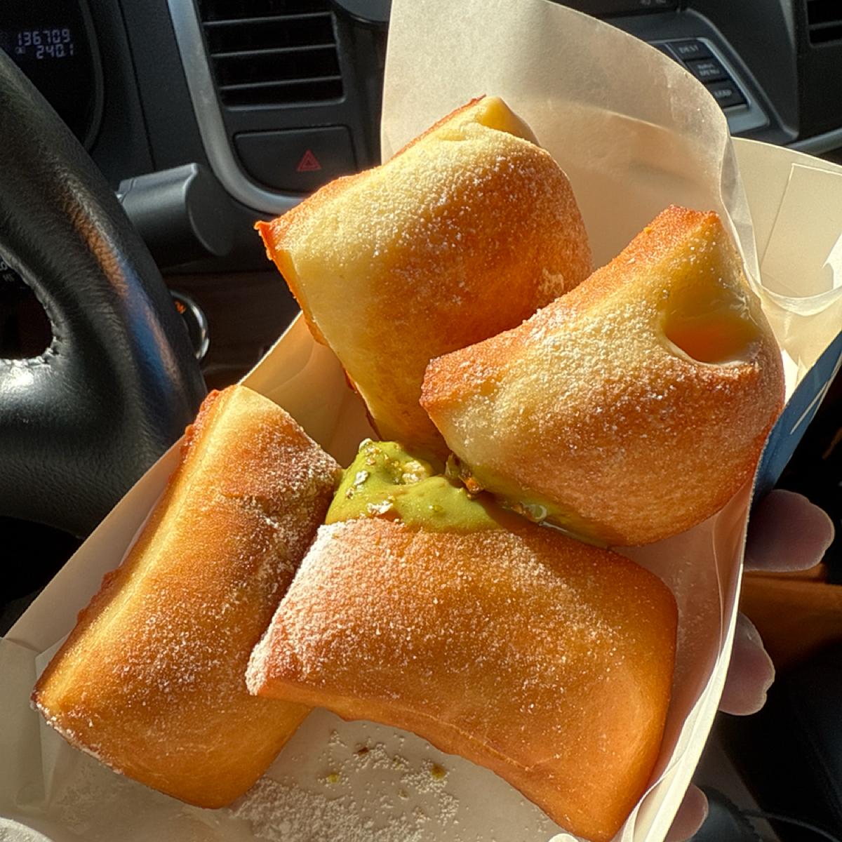 因為想吃開心果,所以只點了法式甜甜圈,這是唯一有開心果口味的品項。一份是2個,甜甜圈單次至少要點4個,就點了開心果和原味卡士達各2顆。