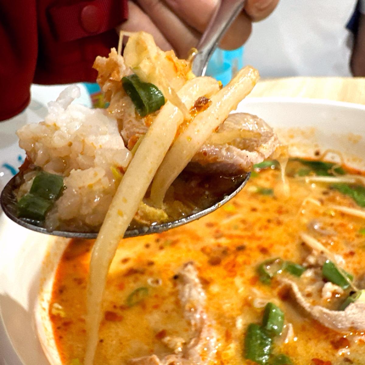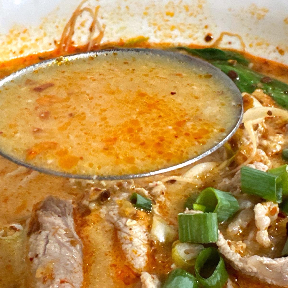 酸中帶鹹,鹹中帶辣的上癮感,光是湯頭就相當開胃; 湯面浮著細碎蔥花,辣與辛香卻又透著柔和的奶香,光是喝湯就很難停下來。
