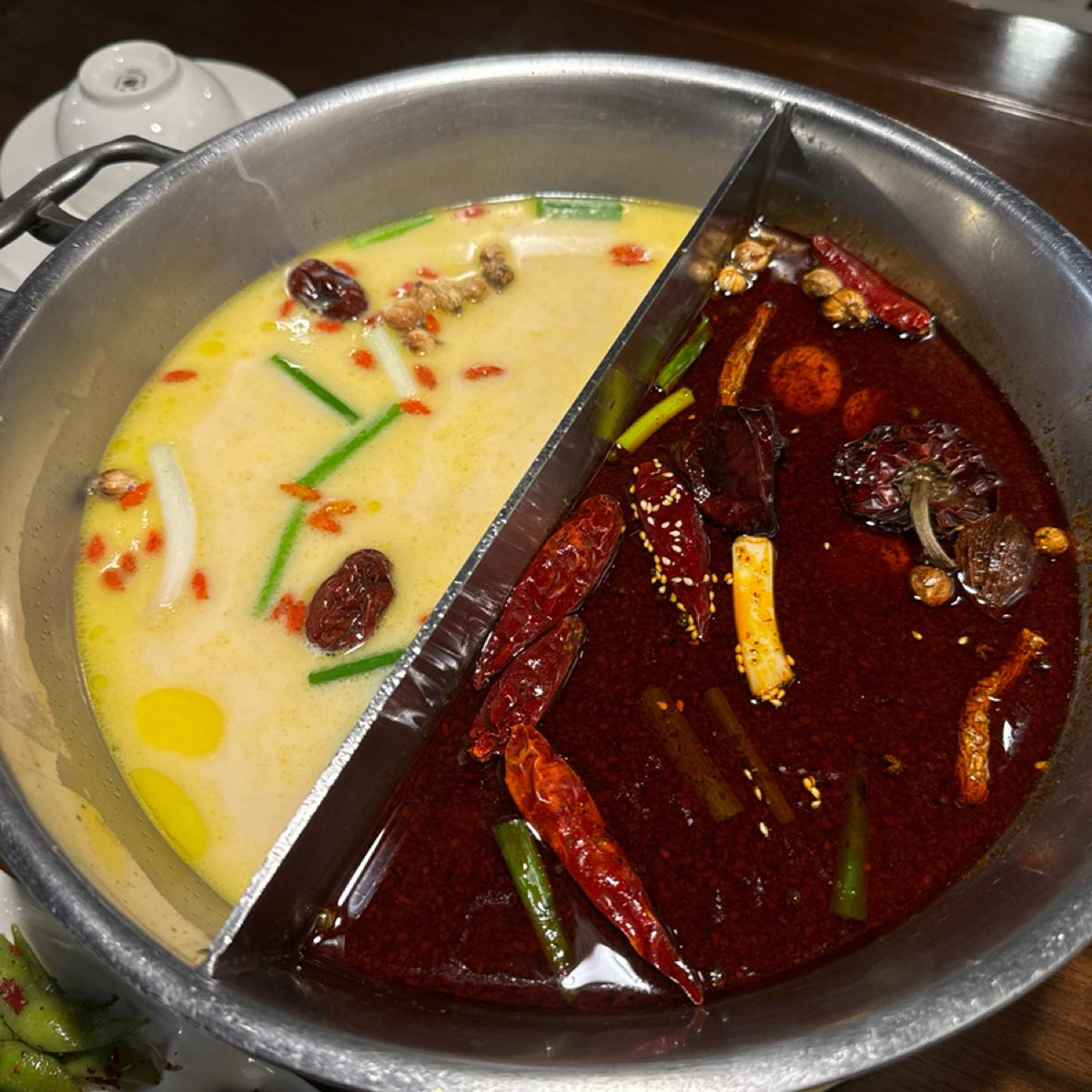 屏東麻辣鍋老字號-牛園火鍋,牛園有十七年的歷史,屏東是總店,在台南也有一間分店,中式氣派的裝潢,鴛鴦鍋有四川麻辣湯、東北酸白菜、香濃牛奶、黃金大骨四種湯頭,豆腐、鴨血、白飯、粥品都可以無限使用。