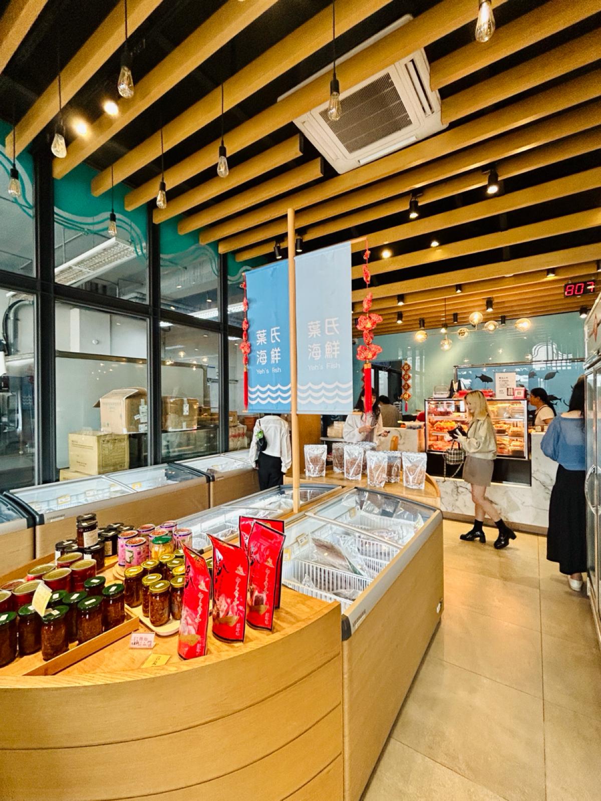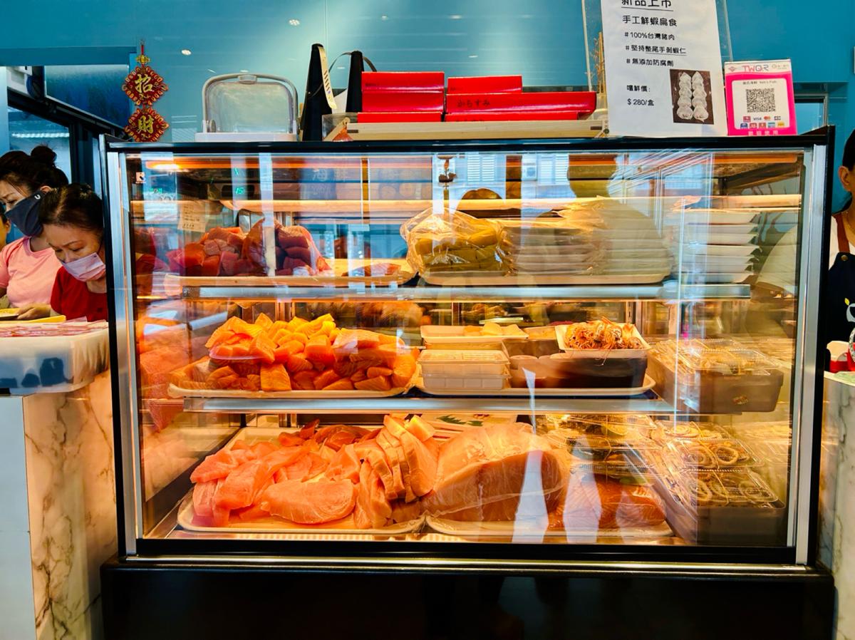 看著玻璃冷藏櫥窗內滿滿的生魚