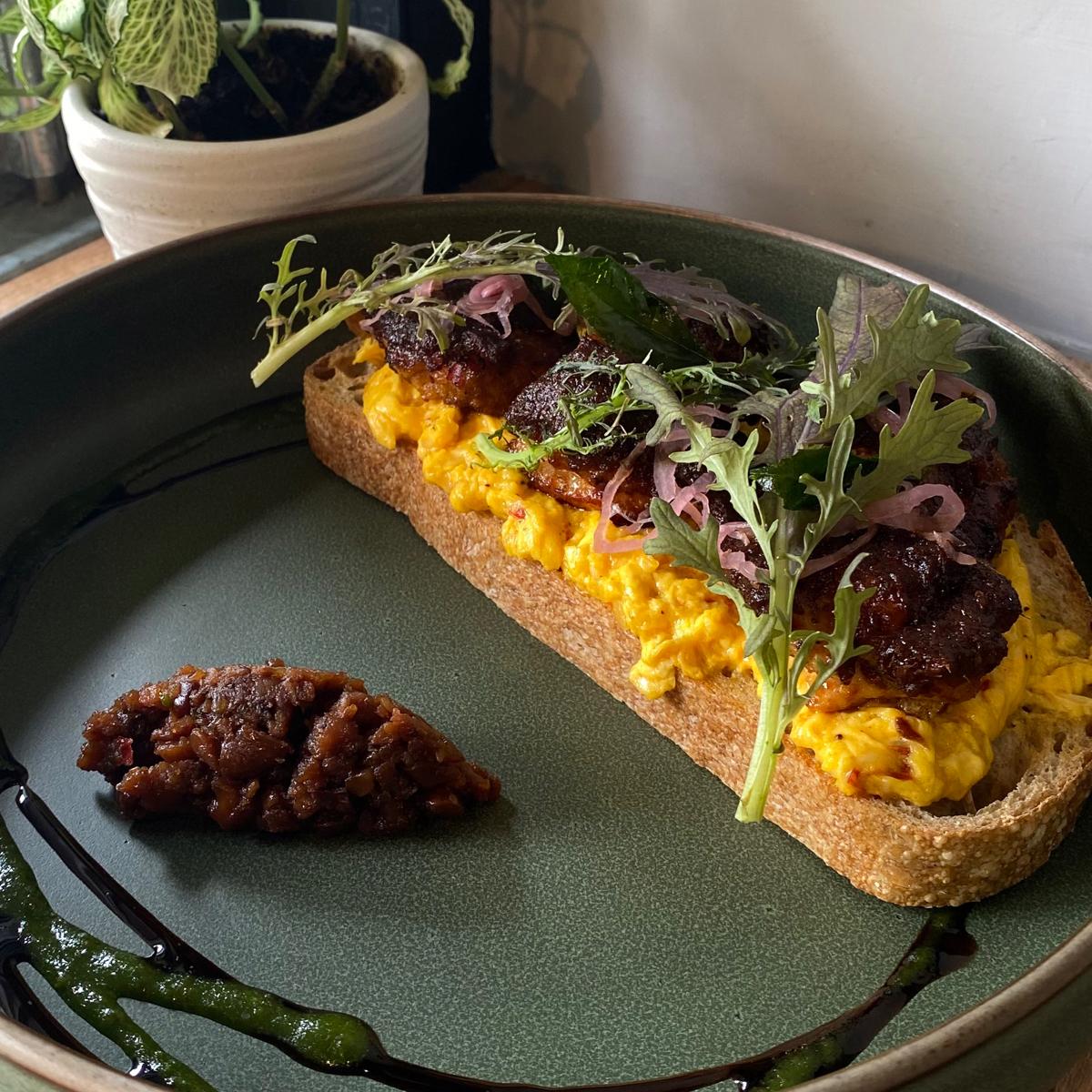 ▫️ 參巴烤雞 | 炒蛋 | 堅果 | 炸咖哩葉 | 酸種麵包 $400