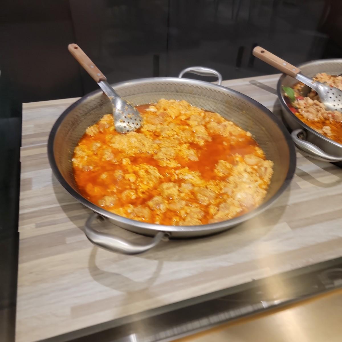 這家的點餐方式是從最左邊拿一個托盤,然後依序往前走跟店員說要點什麼項目(上方有標示價錢),最後走到最前面結帳,類似丸龜製麵的方式。99如果你本來就決定點比較多菜色最好一開始就拿兩個托盤,不然到時候放不下你又要重新排隊