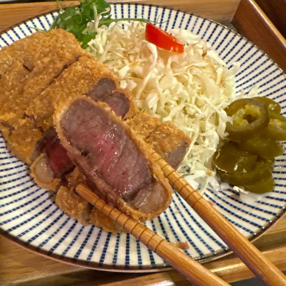 比預期的還小顆一點,搭配的赤味噌醬偏水,且有一個難以形容類似鐵味的味道,不過漢堡排本人是沒什麼問題。