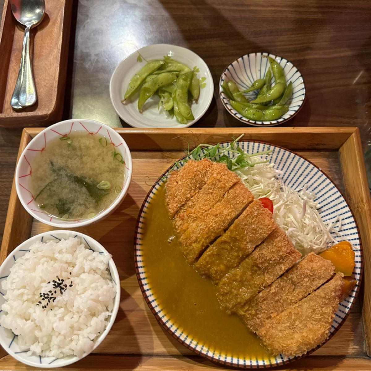 餐點是以定食的樣子出餐(味噌湯、白飯、小菜-毛豆三件套)
