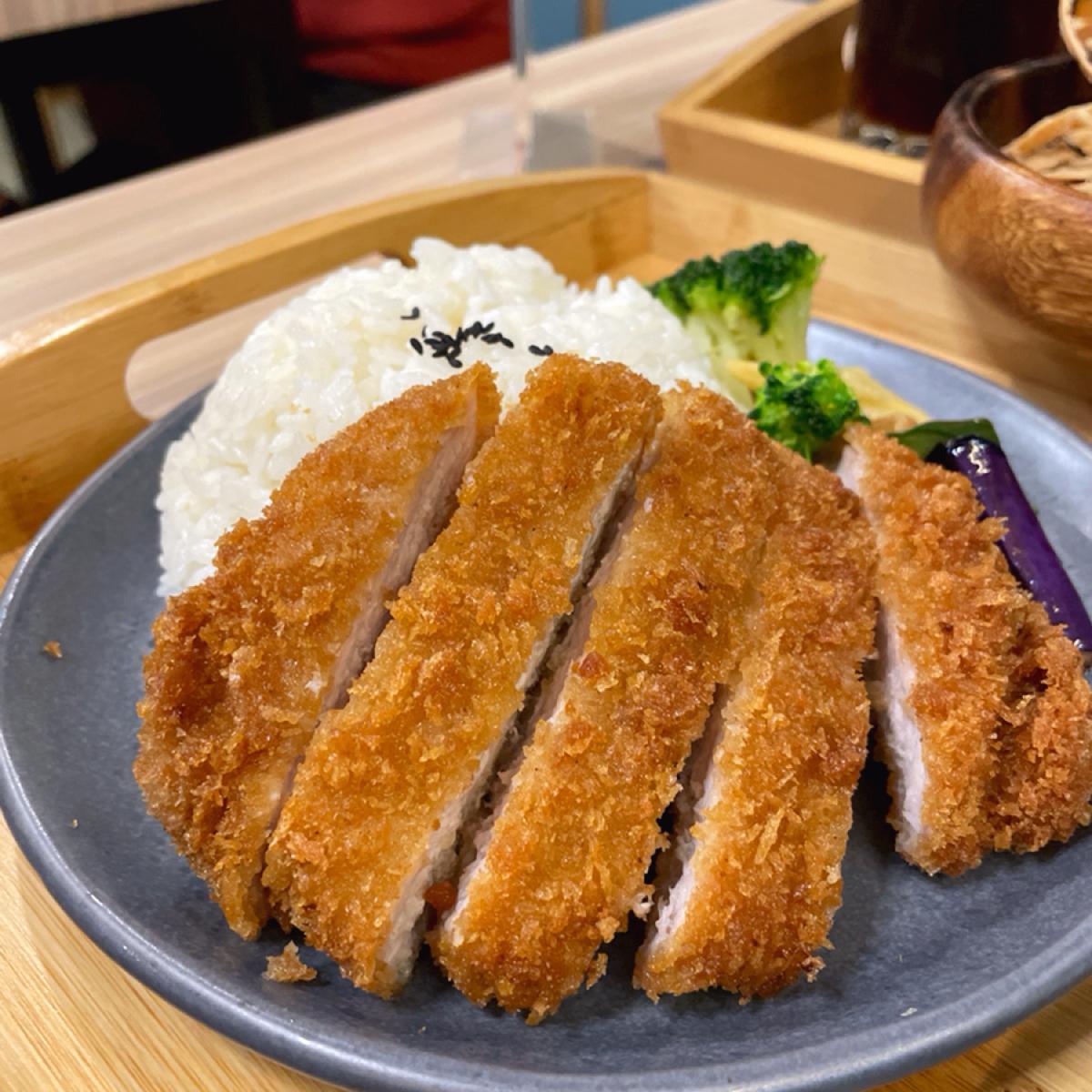 但這家不是只有飯多、把你餵飽,主餐我也覺得給得誠意十足,炸豬排皮薄肉厚,肉丸吃起來也比看起來還大顆(應該是飯造成的比例問題😂)