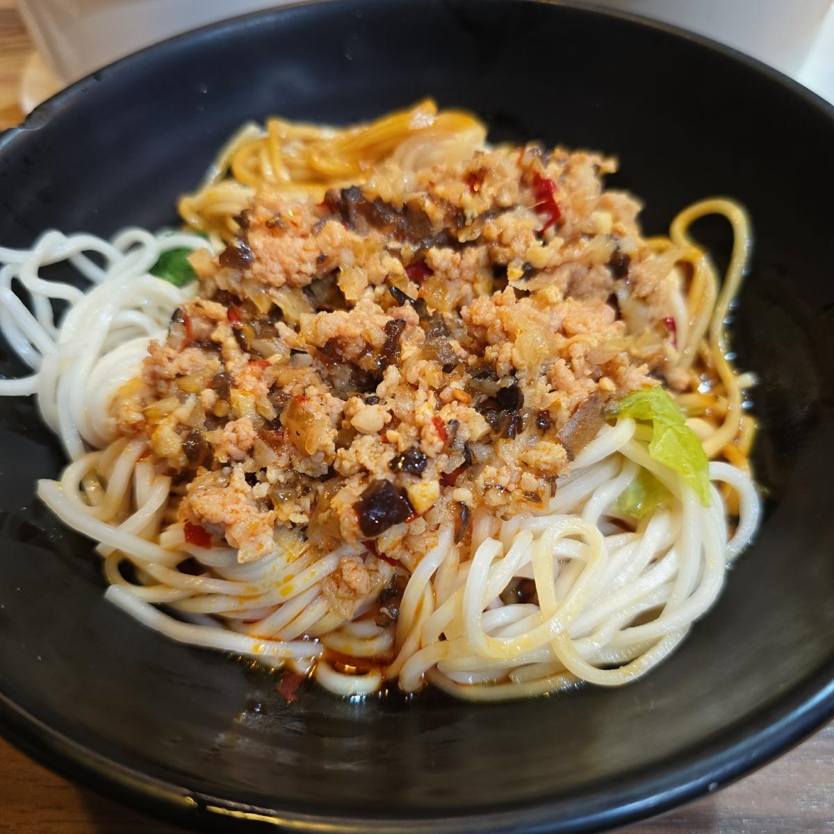 肉醬香濃厚實,鹹香中帶著一絲微甜,與麵條相互融合,稍辣,但並不讓人難受。