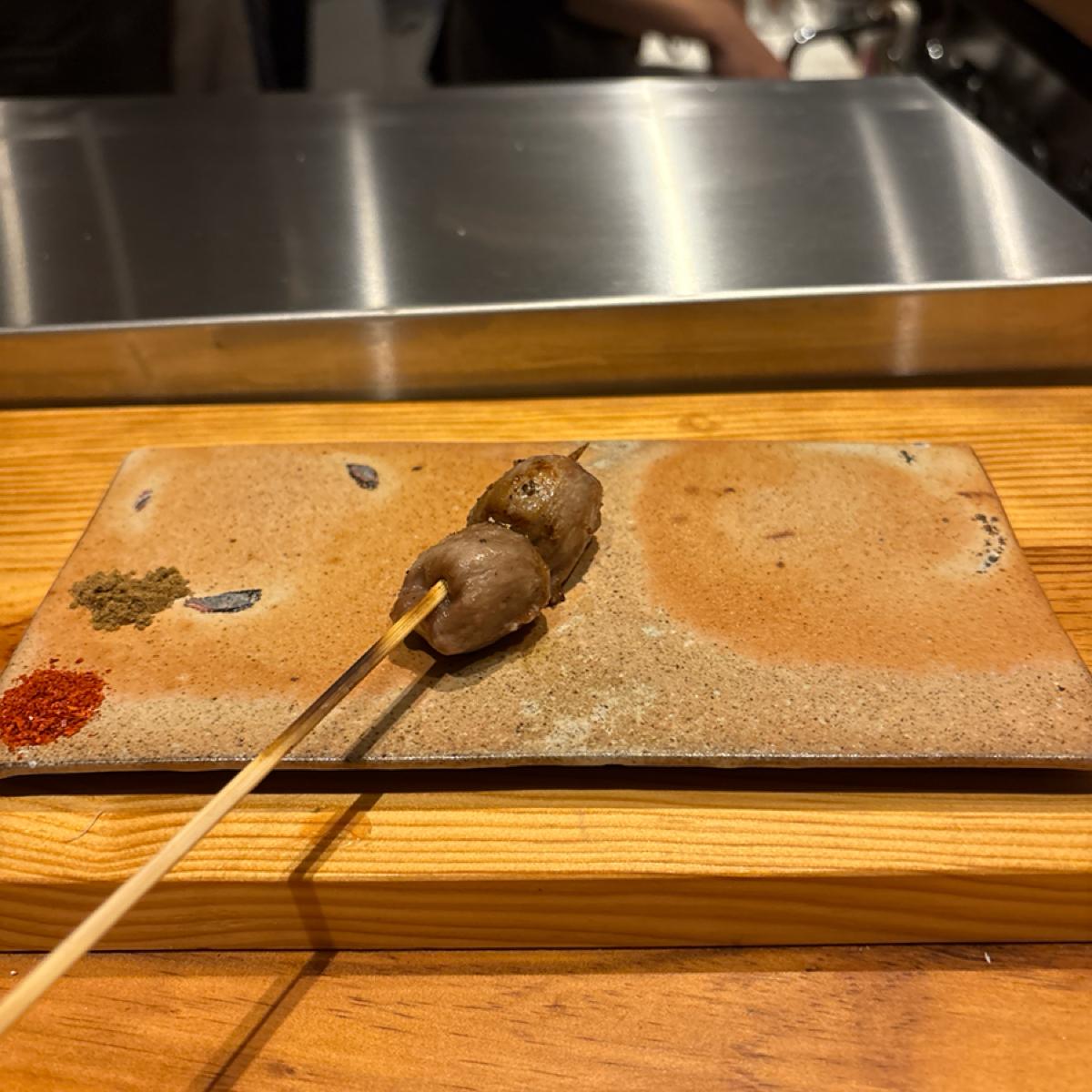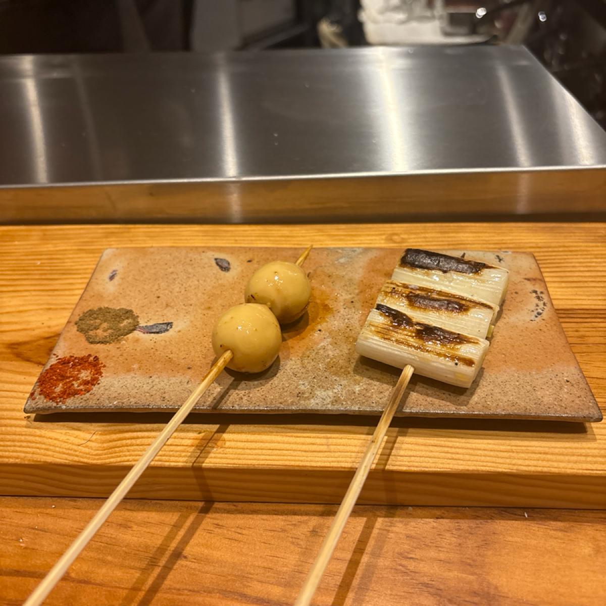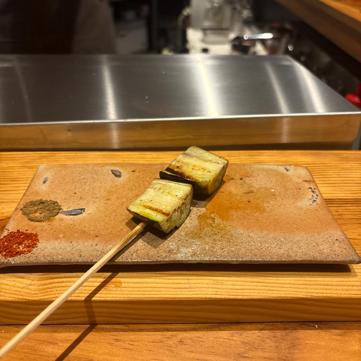 配有山椒和一味辣椒的串燒碟子🔥