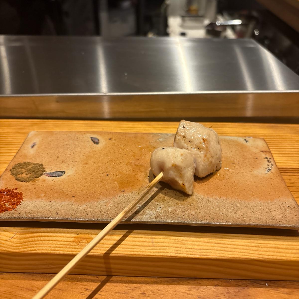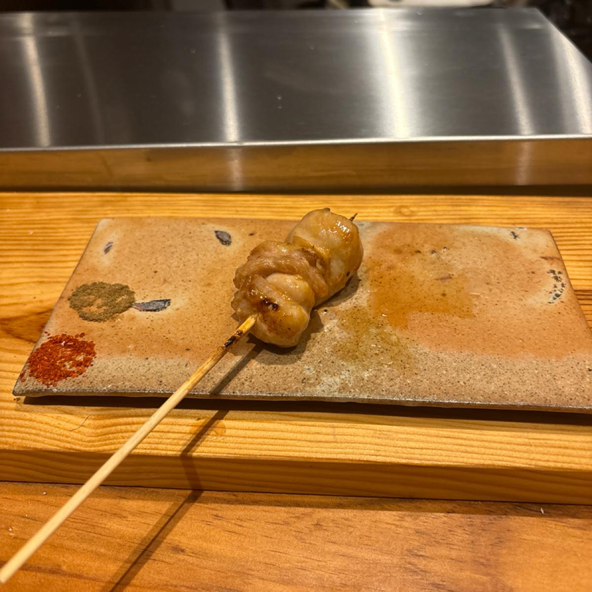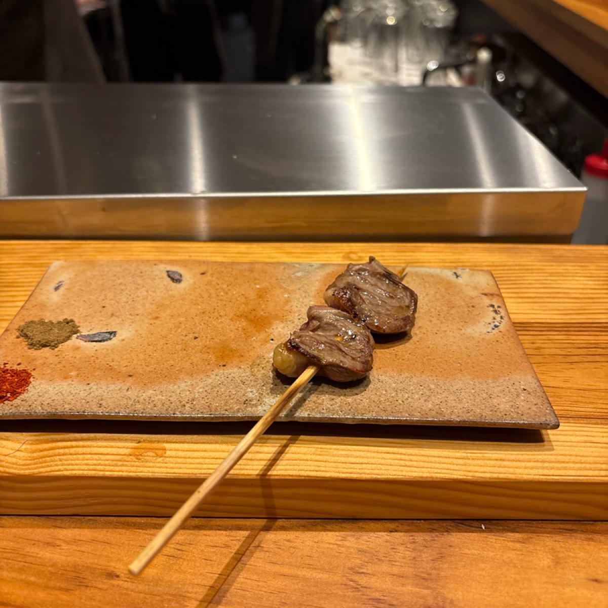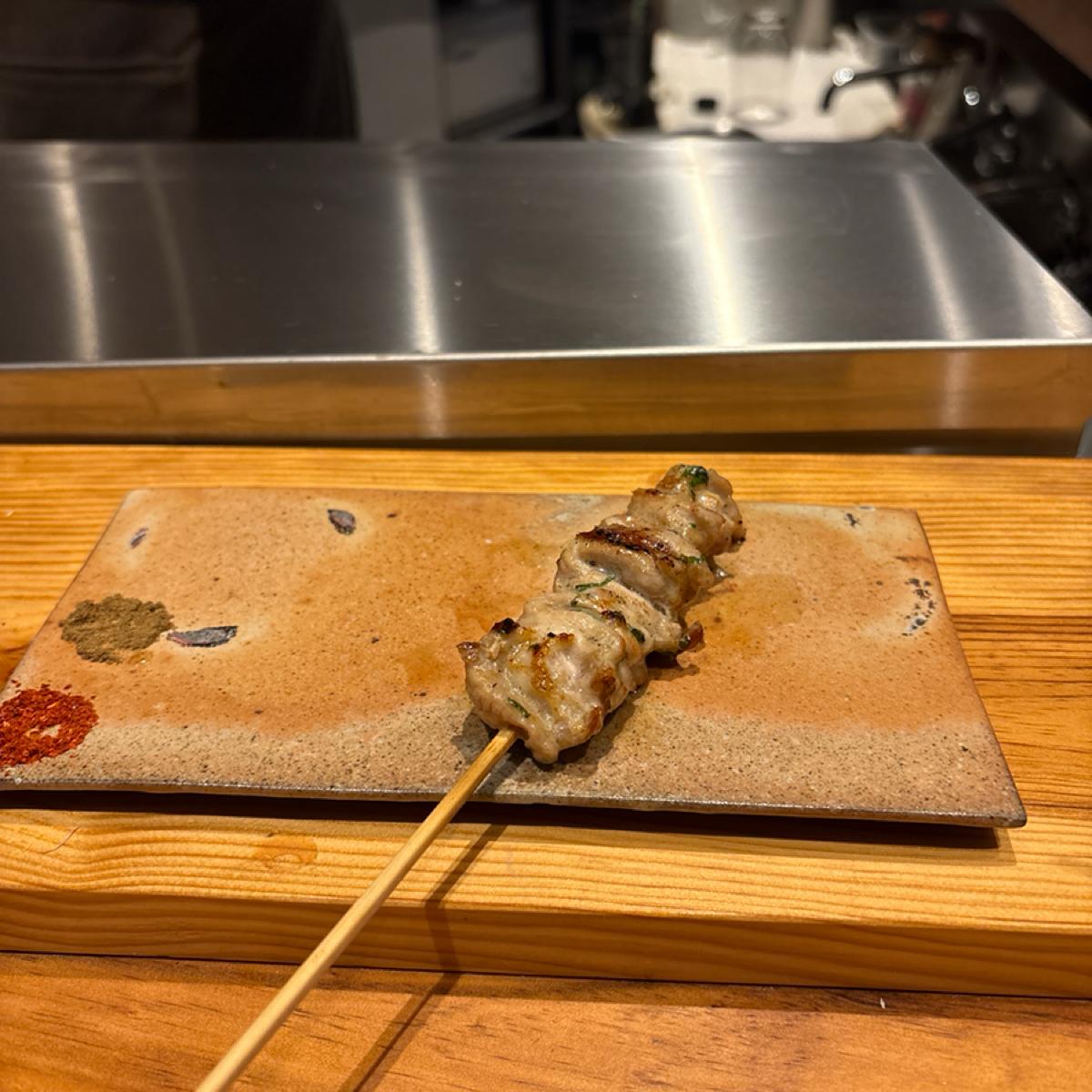 配有山椒和一味辣椒的串燒碟子🔥