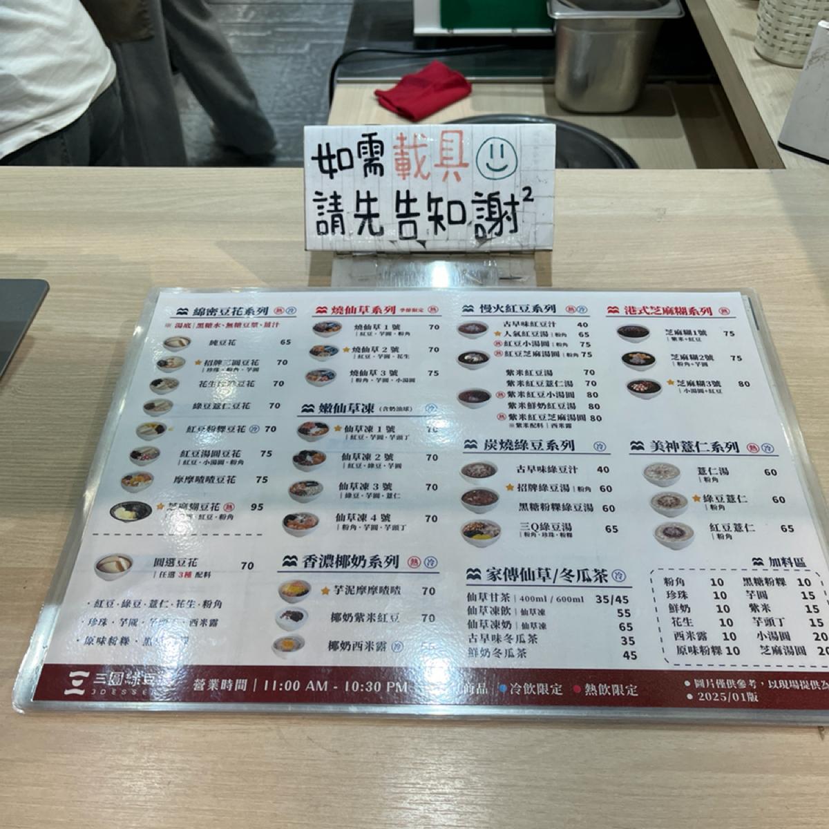 餐點的部分主要就是豆花店會有的基本款標配,配料也都應有盡有,吃起來的口感都有平均的水準,但不會讓人特別有記憶點,就是比較平常的餐點。可以做熱的豆花,也可以做刨冰豆花。