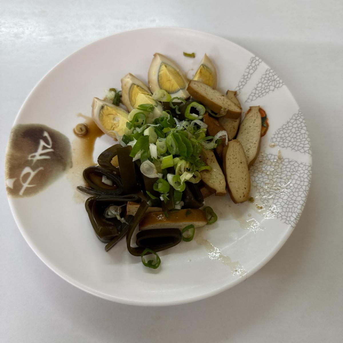 點了豆乾、海帶和滷蛋,其中豆乾表現最優秀,滷得入味還保有彈性,加上大量蔥花提香,簡單卻令人滿足,其他滷味則屬中規中矩~