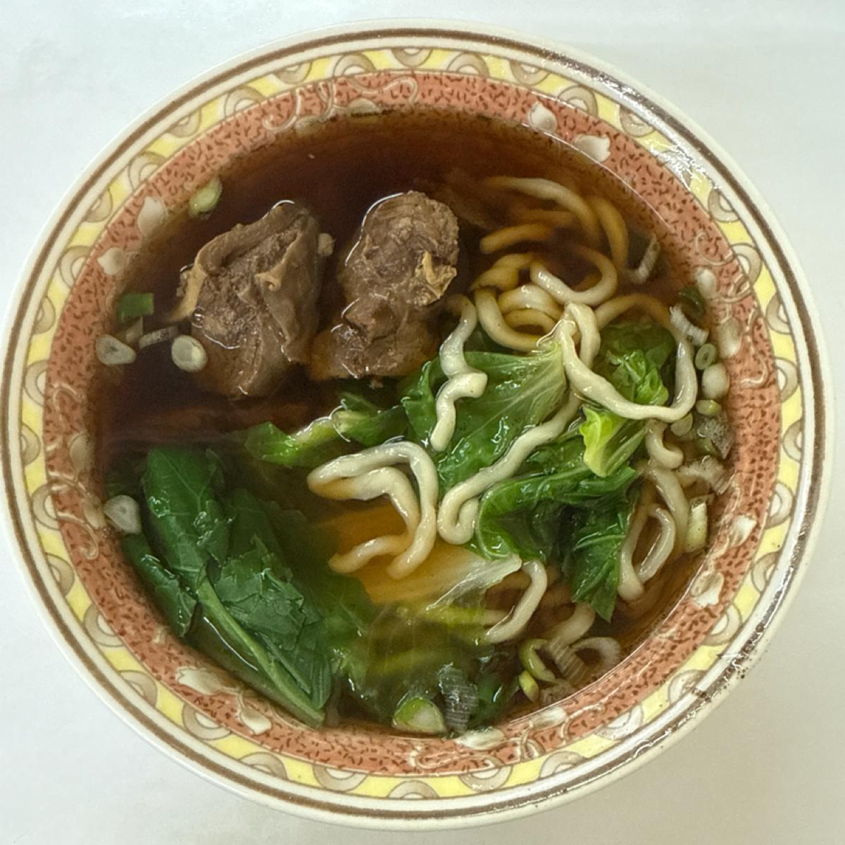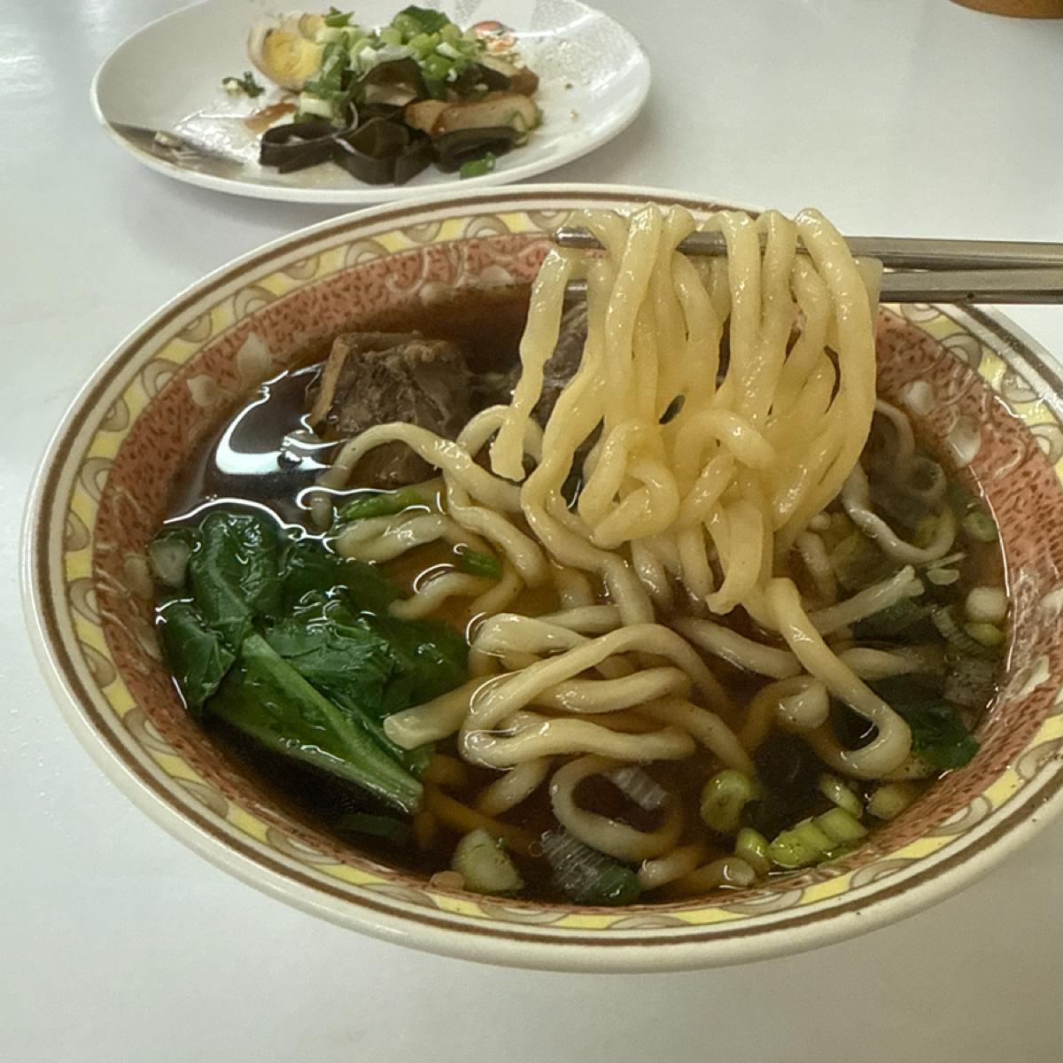 碗裡有四塊牛肉,沒有特別軟嫩。最大亮點是湯頭,鹹香有勁卻不油膩,是那種一口接一口會忍不住喝光的湯。麵條軟硬適中,吸附湯汁的表現也不錯,是一碗整體平衡感還不錯的牛肉麵。