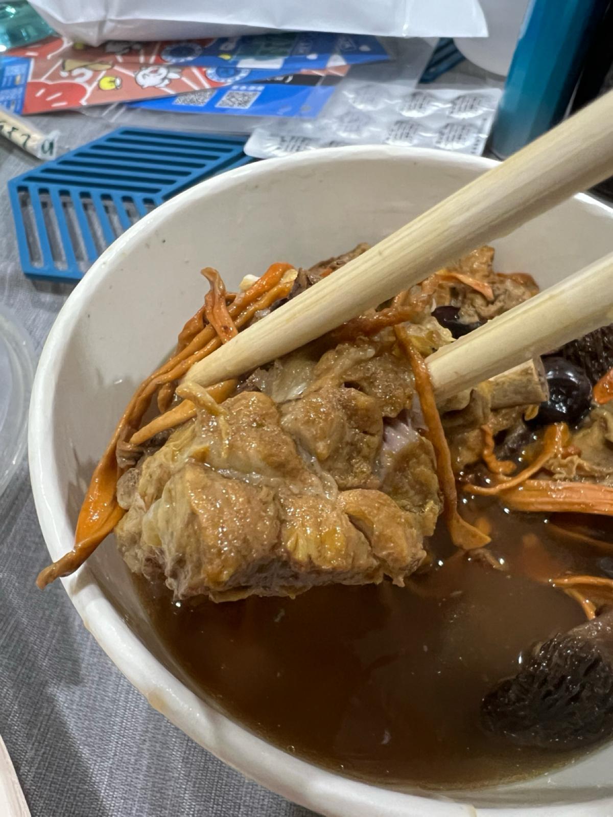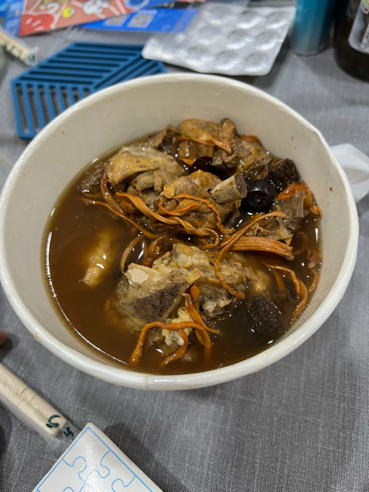 羊肚菌土雞湯的湯底很有層次,帶點藥膳的清香,味道與一般雞湯明顯不同。雞肉燉得非常軟嫩,幾乎是入口即化,感覺是真材實料。湯裡的羊肚菌提升了整體香氣和風味,是比較少見的搭配。茶水也是店家的一大亮點,免費提供,喝起來有一種清爽的甘甜感。