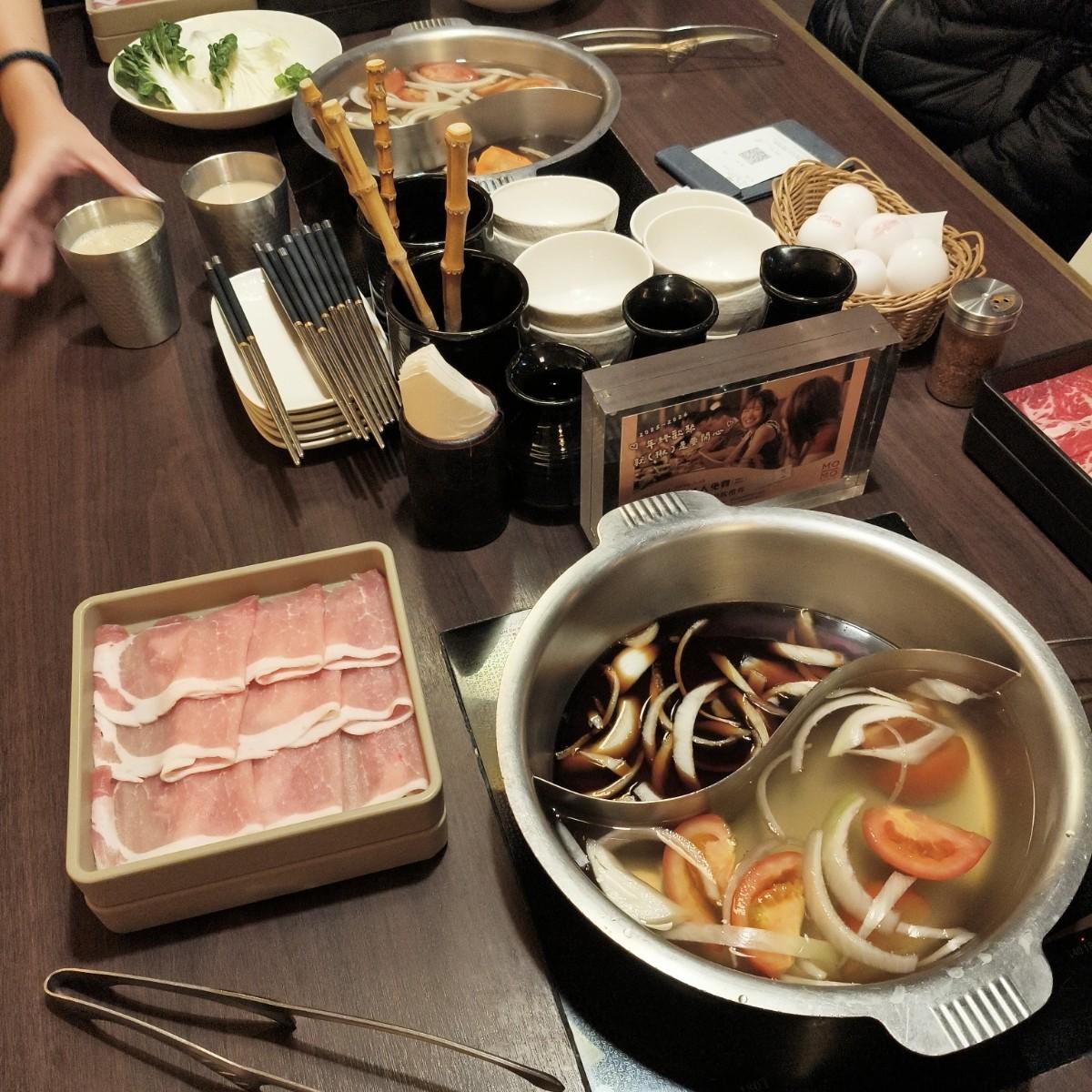 🍚副食除了基本的白飯/冬粉,還有提供胚芽米。等肉吃膩後下個烏龍麵,讓壽喜燒汁收乾入味非常好吃!