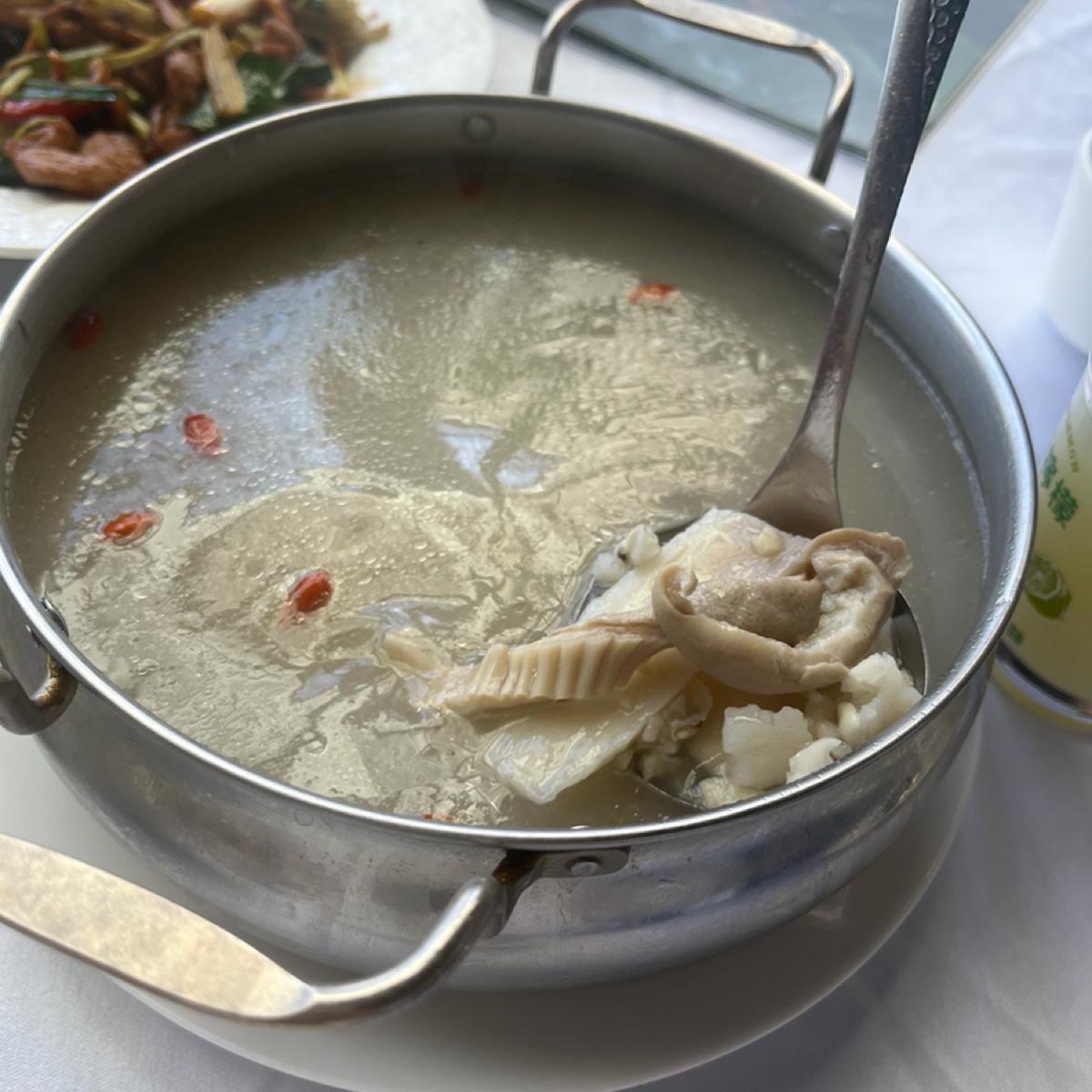 新月梧桐餐廳的腹地滿大的,除了正餐的用餐區域,外面的庭園造景也蠻用心在經營的 可以點咖啡、冰淇淋坐在外面吃 這次點的餐點 四神湯:裡面有加豬肚,吃起來滿有嚼勁的 四神湯的味道很香,感覺有加一點酒提味 客家小炒:給料給的大方,魷魚、肉、豆干分配均勻 鹹蛋豆腐:我最喜歡這道,有點金沙豆腐的感覺,但甜度適中,配飯剛剛好