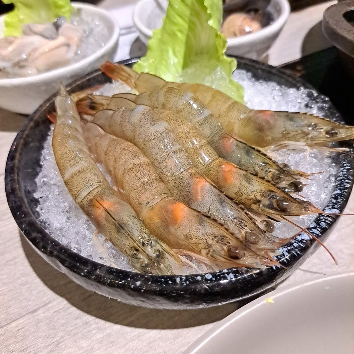 打卡贈送的海鮮類跟單點的白蝦很新鮮,桌子上貼有小卡告訴你大概要煮多久很貼心。關於海鮮的小插曲是另一個沒有失戀的隔壁桌點了雙人套餐,男生似乎煮完後覺得裡面的天使紅蝦不太新鮮,不過我只用目測的話,生鮮上桌的時候看起來其實超新鮮的樣子,留給要點高檔海鮮的人做參考。