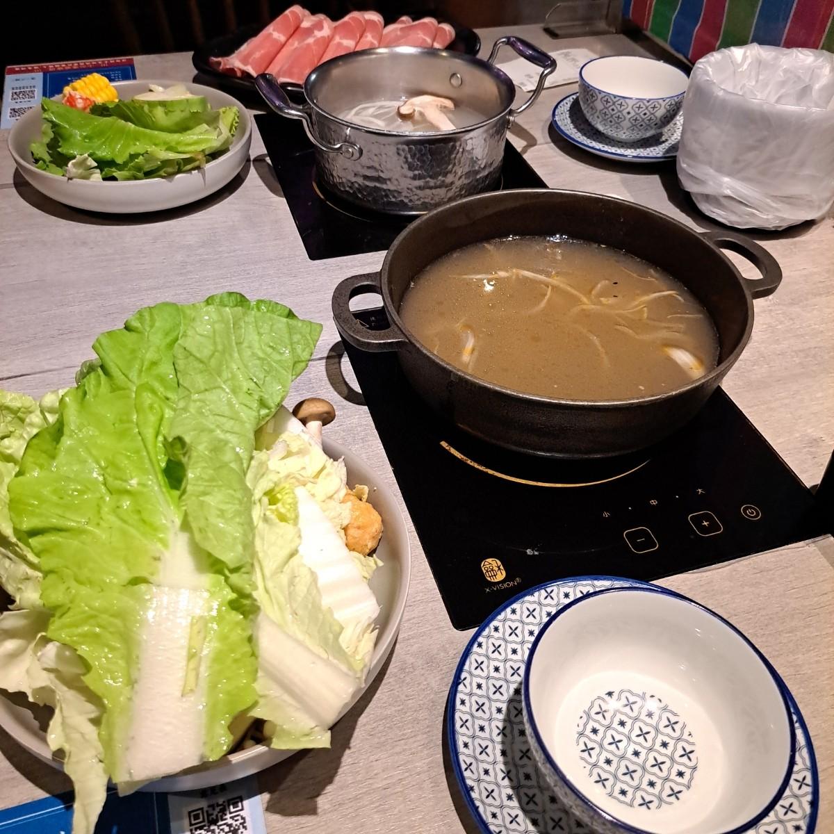 主餐部分不得不大誇一下,份量很多,而且我的嫩雞胸肉上來的時候超像什麼高檔生魚片,煮起來居然也不會乾柴,真的推薦給各位,好吃又大碗。梅花豬肉也很好吃,不會有廉價火鍋肉品常有的豬腥味,如果單純只是想吃火鍋,點這兩種最便宜的肉品就已經很滿足,相對來說cp值也比較高些。