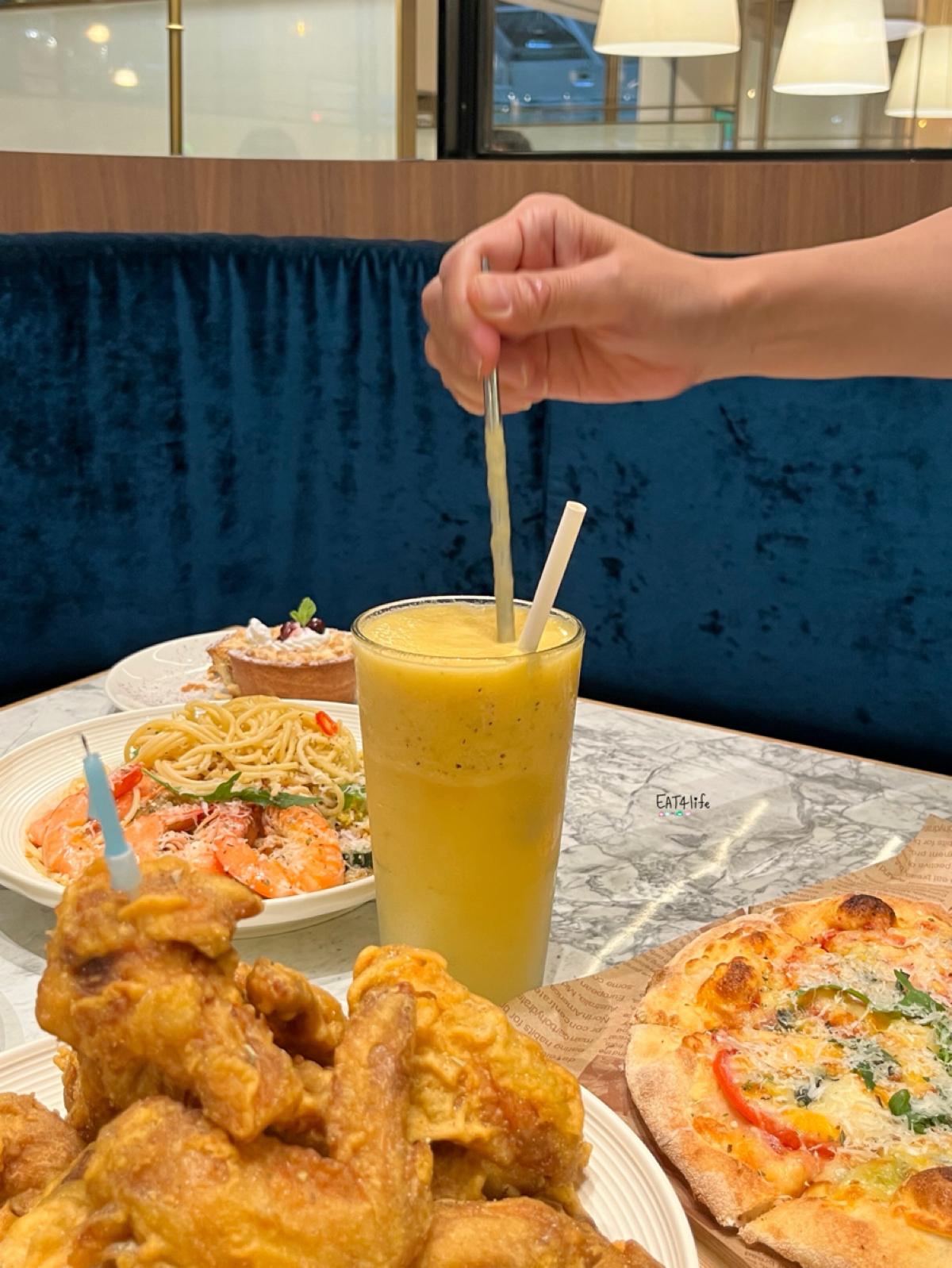 用芒果、百香果、鳳梨、蘋果現打的果汁,光看水果組合就知道一定好喝,而且不會太甜~口感也不會有水果渣渣!順口好喝,愛喝果汁或不喝咖啡因的朋友可以選!