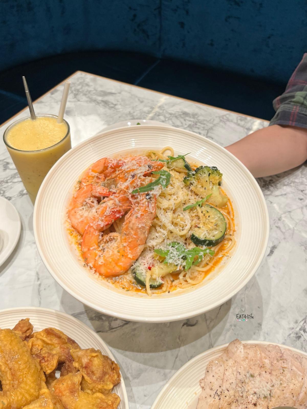 義大利麵的味道很清爽,大約是小辣,小編非常喜歡!而且蝦子也太大隻,還有四隻,又很新鮮,Q彈紮實,敢吃辣的朋友大推這款。