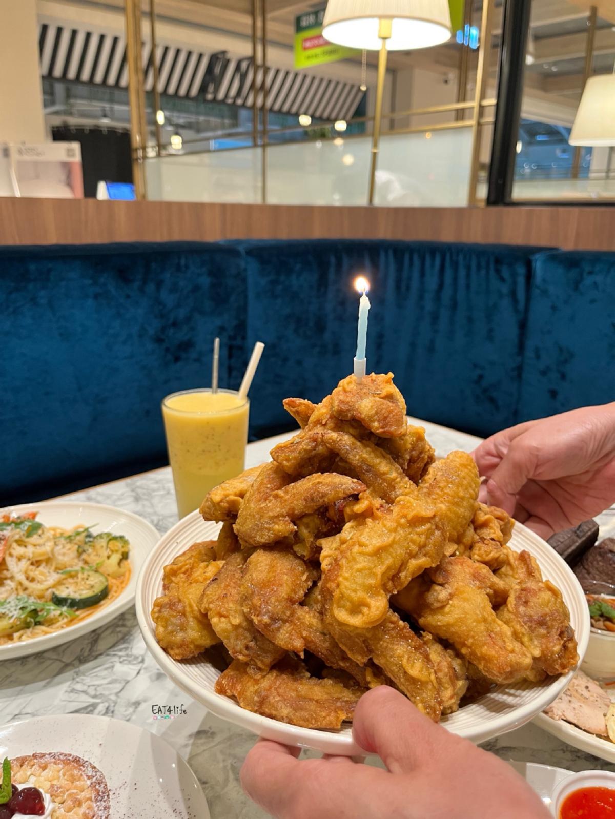 晚上也可以點早午餐!舒肥雞真的很嫩,而且沒有腥味,應該是雞胸肉的部位,不過完全不乾柴,吐司我們選了巧克力生吐司,裡面還有巧克力豆豆,半融化的感覺超讚,沙拉居然還有小地瓜,最喜歡的是沙拉的醬,有別於一般的沙拉醬,還有口感輕盈的優格~