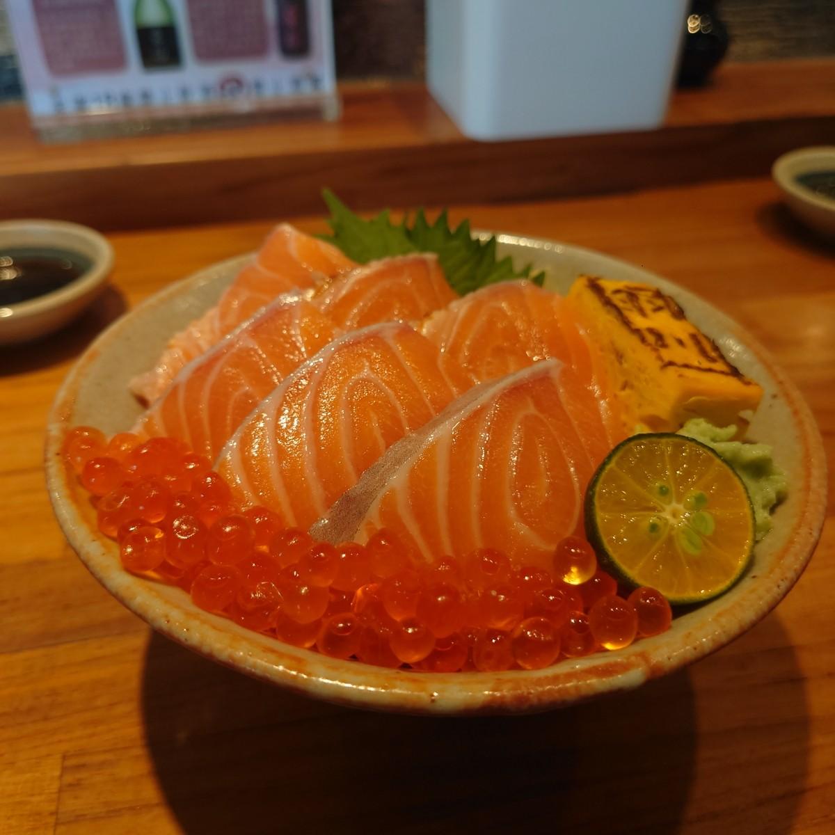 這次我吃的是特上海鮮丼飯,女朋友則是吃鮭魚親子丼飯,海鮮非常新鮮,用筷子夾起來的時候可以輕易感覺到魚肉的Q彈,配著山葵跟醬油非常美味,附餐的味噌湯也是非常有特色,而且飯跟湯在覺得不足的時候還可以免費續,這一點我覺得很棒。