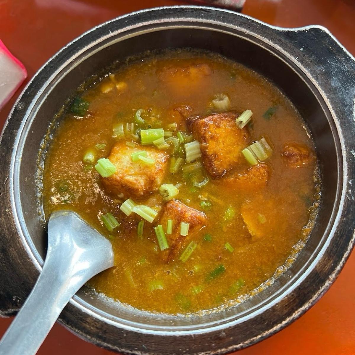 炒時蔬應該是山蘇,口感非常清脆,調味簡單但很鮮美,讓人一口接一口。再來是雞肉料理,肉質非常鮮嫩,處理得當,沒有那種乾柴的感覺,吃起來相當舒服。菜脯雞湯也讓人印象深刻,湯頭溫潤,菜脯的鹹香融入雞湯,讓整個湯的層次變得很豐富,好喝到讓人忍不住再多喝幾碗。